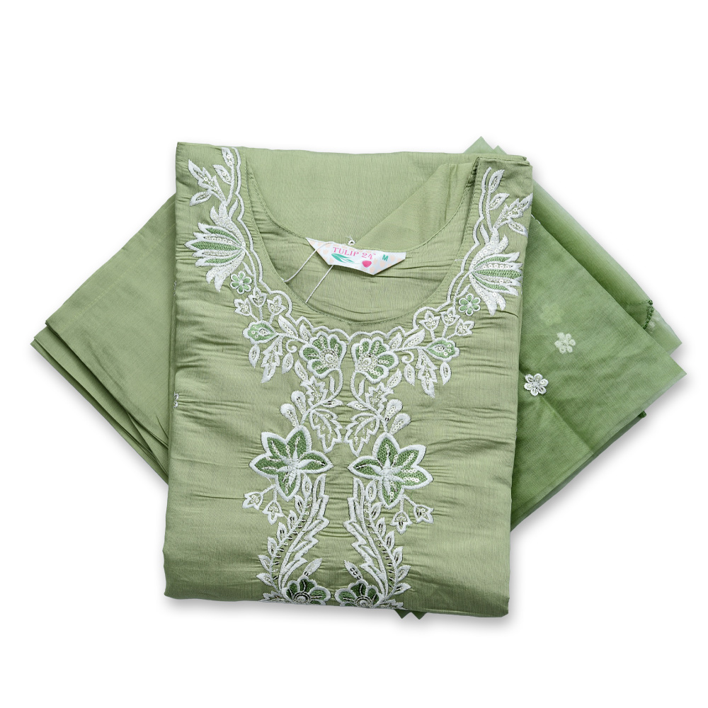 Step into understated sophistication with this beautifully crafted salwar suit set. The subtle white floral embroidery adds a soft, feminine touch, making it suitable for festive gatherings or casual celebrations. Paired with a matching green dupatta featuring embroidered edges, this ensemble delivers a refined and graceful appearance.