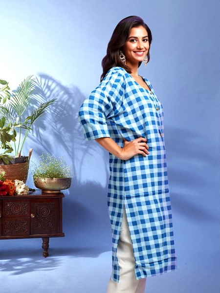 From brunches to beach days, the Sunny Vibes Checkered Kurta pairs effortlessly with everything from casual pants to your favorite denim.