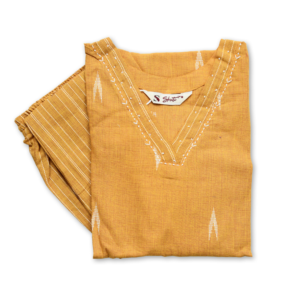 Elevate your everyday style with this refined two-piece kurta set, designed for effortless sophistication. The elegant V-neckline is enhanced with fine thread detailing, creating a delicate focal point that adds charm without overpowering the look.