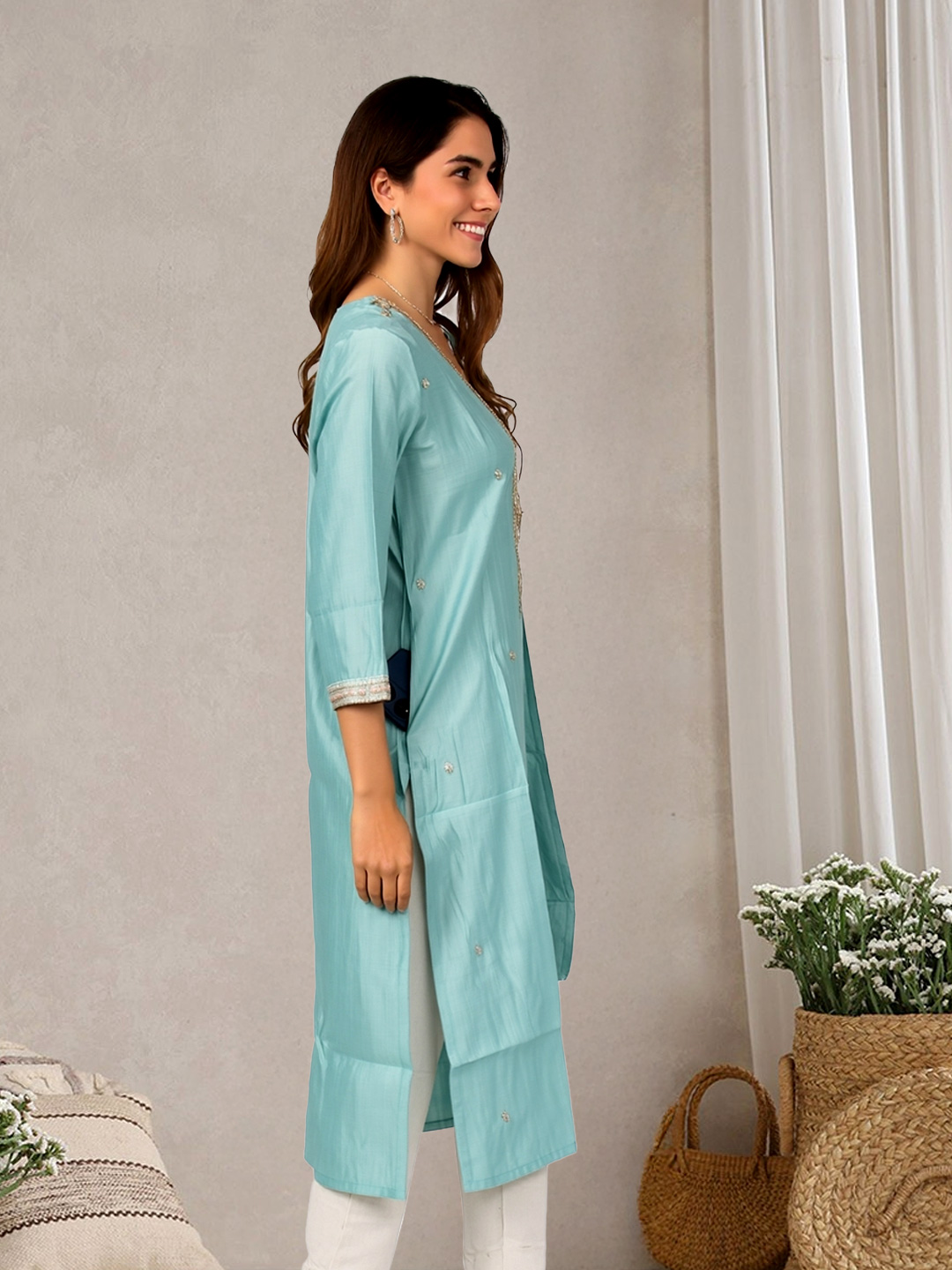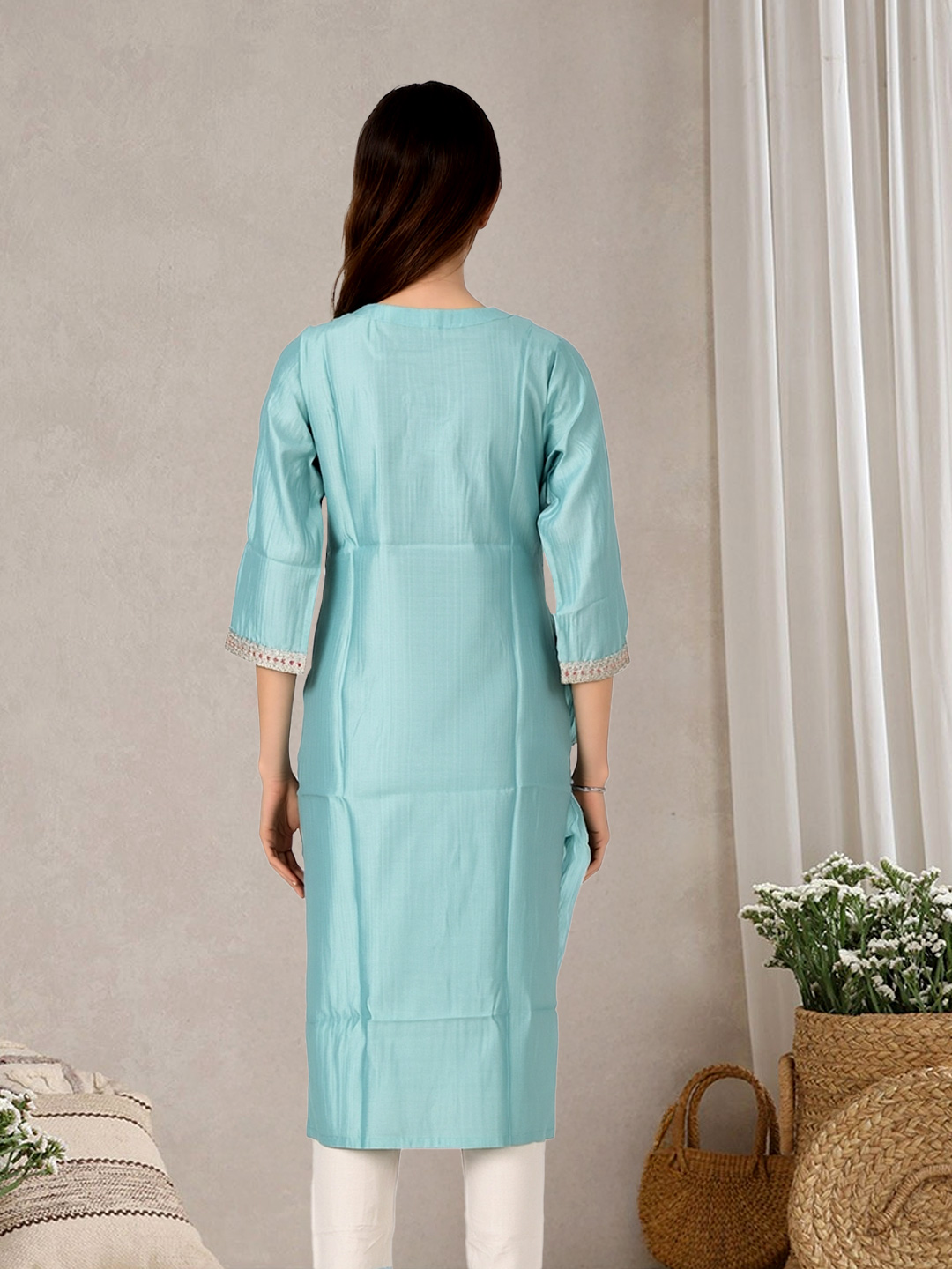 With its straight-cut design, this kurta offers a flattering fit that enhances your natural silhouette while ensuring comfort and poise.