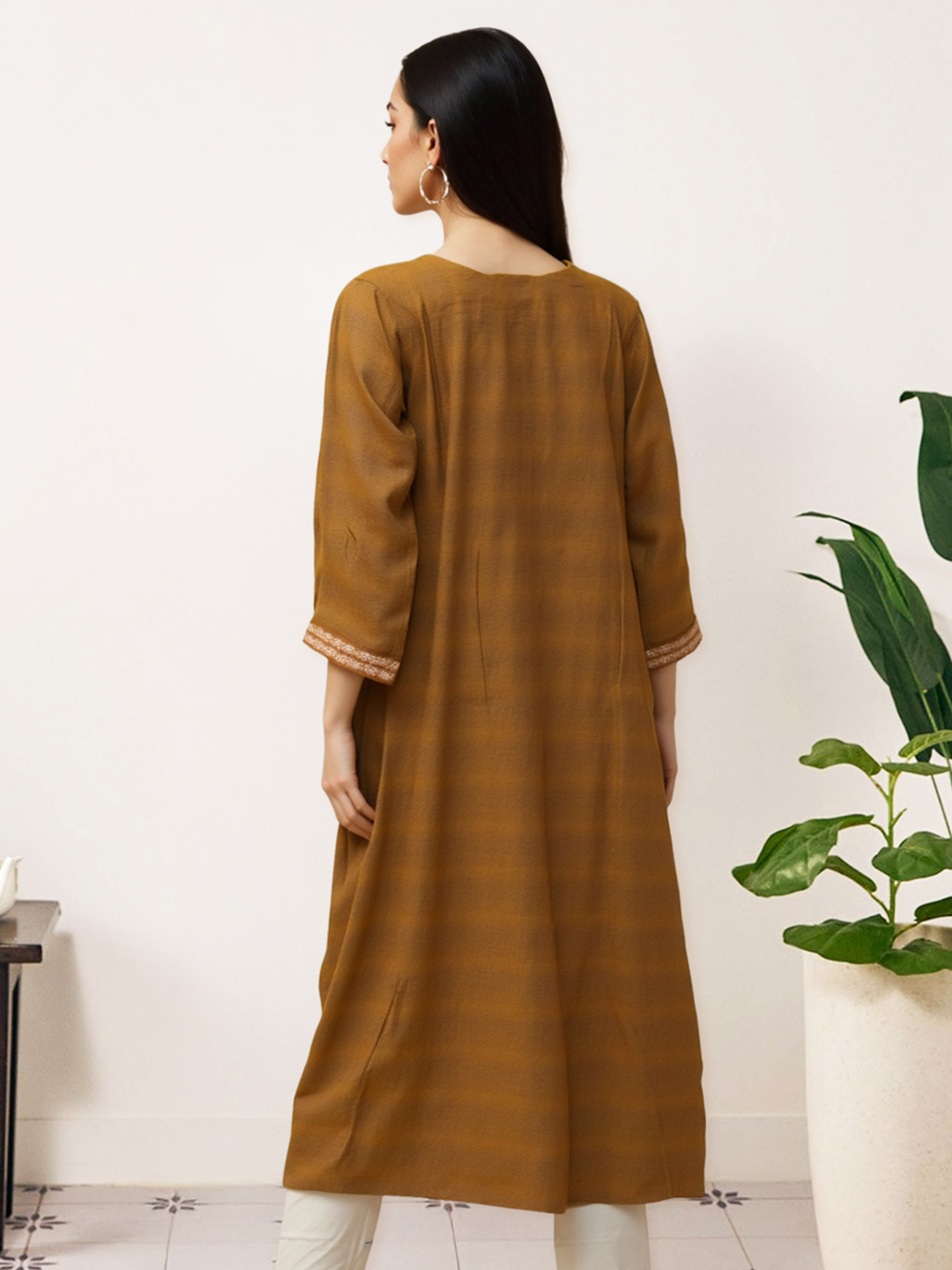 The 3/4th sleeves are finished with beautifully embroidered cuffs—thoughtfully designed to elevate the look without overwhelming it. A perfect example of how less is more.