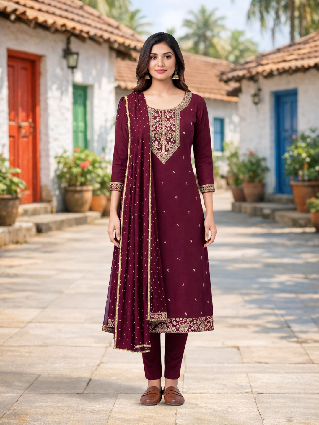 | Set includes | Kurta with matching pants & Dupatta |