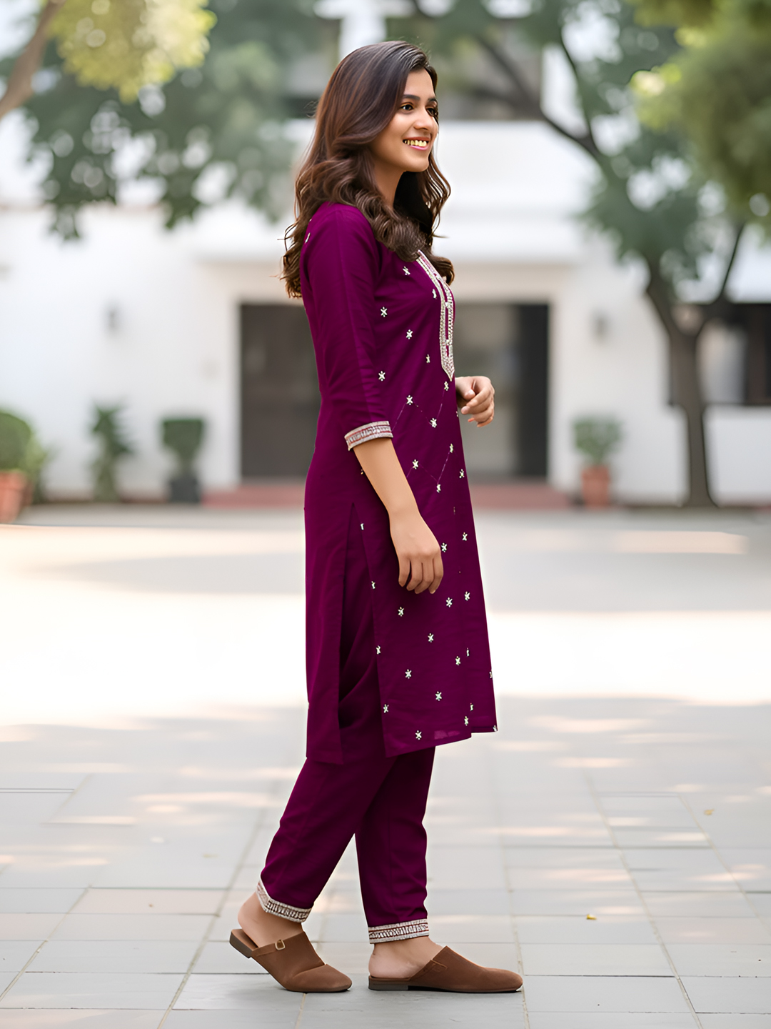 | Pant Type | Matching churidar pants with coordinated embroidery |