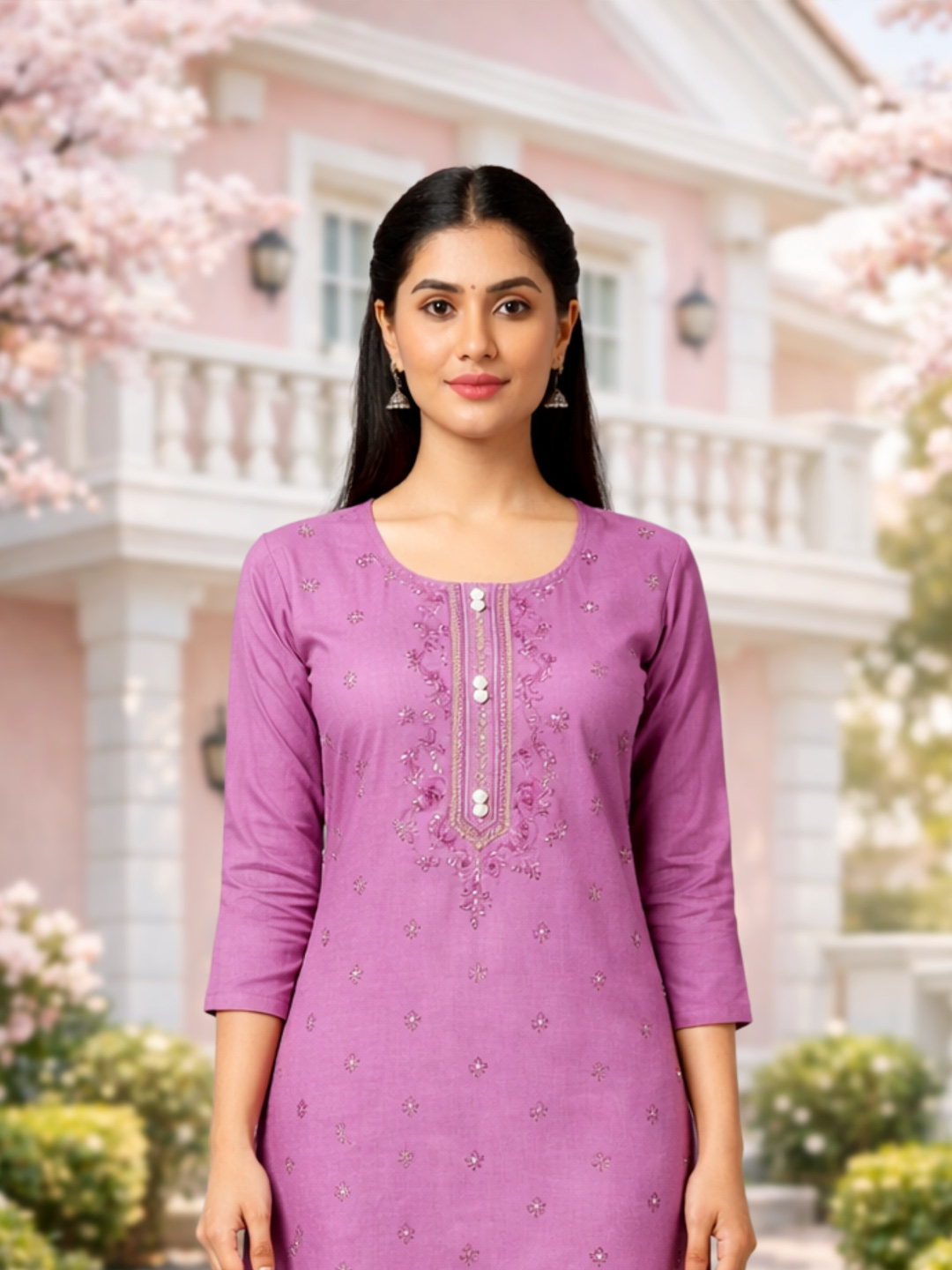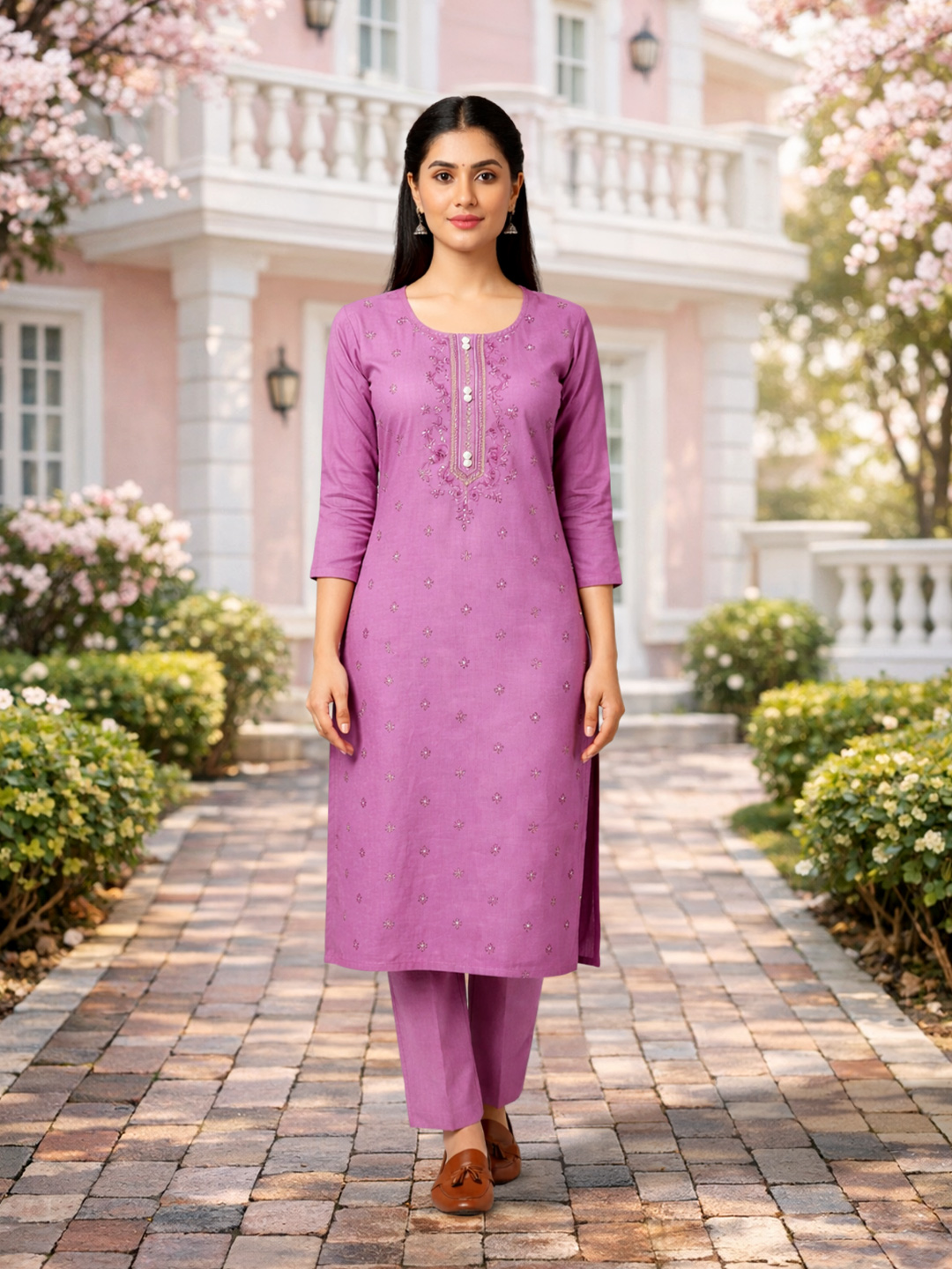 Upgrade your everyday ethnic wear with this stylish and versatile ensemble. The combination of subtle sequins, fine embroidery, and a polished straight-fit design ensures you look graceful and confident wherever you go.