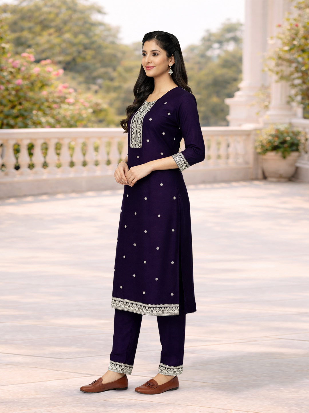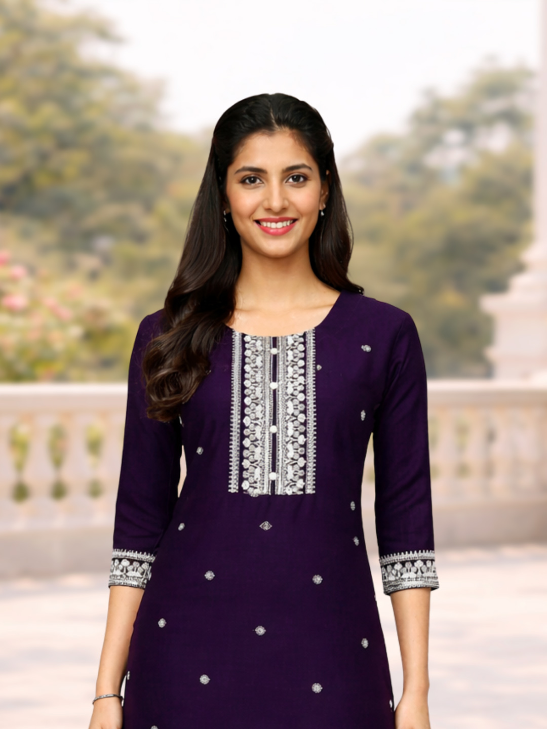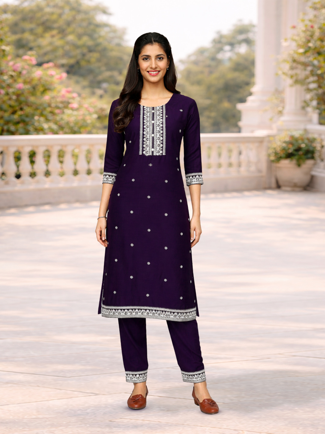 Upgrade your ethnic wardrobe with this sophisticated ensemble. The subtle embroidery, coordinated design, and breathable fabric ensure a polished appearance while keeping you comfortable throughout the day.