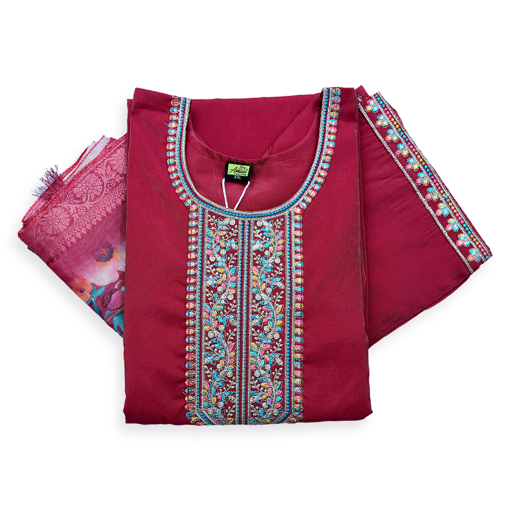 Crafted from soft, breathable fabric, this Traditional Straight Cut Embroidery Salwar Suit Set combines subtle elegance with intricate design. The embroidered cuffs, vibrant hemline, and decorative tassels on the dupatta lend a touch of sophistication, making it an ideal choice for everything from intimate family gatherings to festive occasions. The lightweight feel ensures you stay comfortable while looking effortlessly chic.
