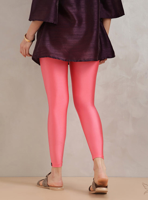 Add a fresh pop of glamour to your wardrobe with Twin Birds Coral Pink Ankle Length Shimmer Leggings. The lively coral pink shade with a subtle shimmer brings brightness and charm to festive, party, and evening looks.