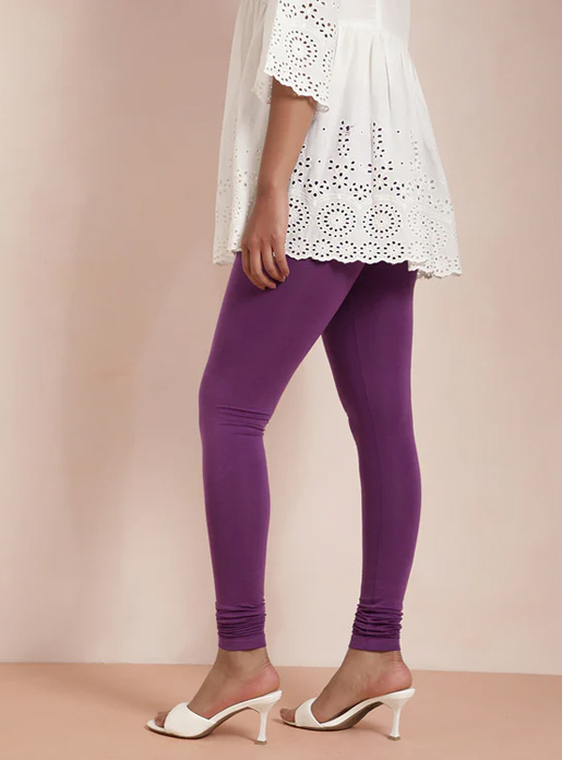 Part of a collection of trendy, vibrant colours, these violet leggings pair effortlessly with kurtas, tunics, or long tops, offering endless possibilities for stylish and active ethnic combinations.