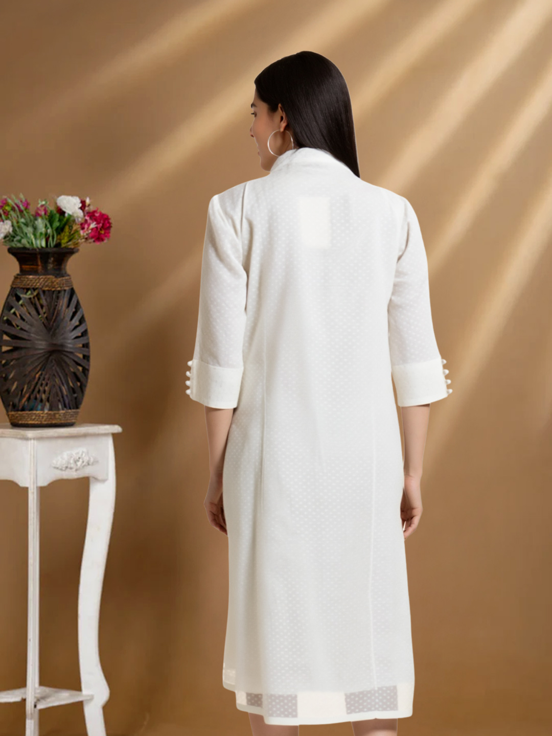Elevate your everyday look with this V-collared kurti. Its refined silhouette and elegant design make it perfect for office wear, casual outings, or festive gatherings.