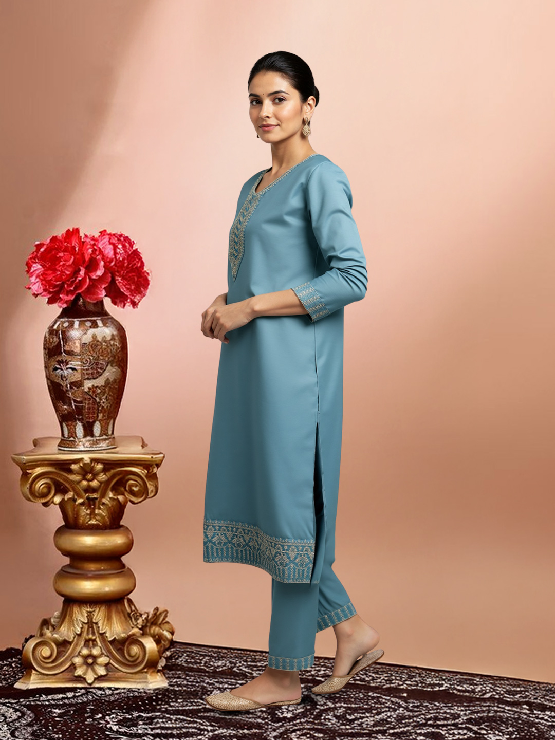 From intimate family gatherings to grand celebrations, this embroidered salwar suit set is designed to suit a variety of occasions. Its timeless embroidery, paired with a contemporary fit, ensures you can wear it for everything from traditional ceremonies to modern festivities. A versatile, elegant choice for any woman's wardrobe.