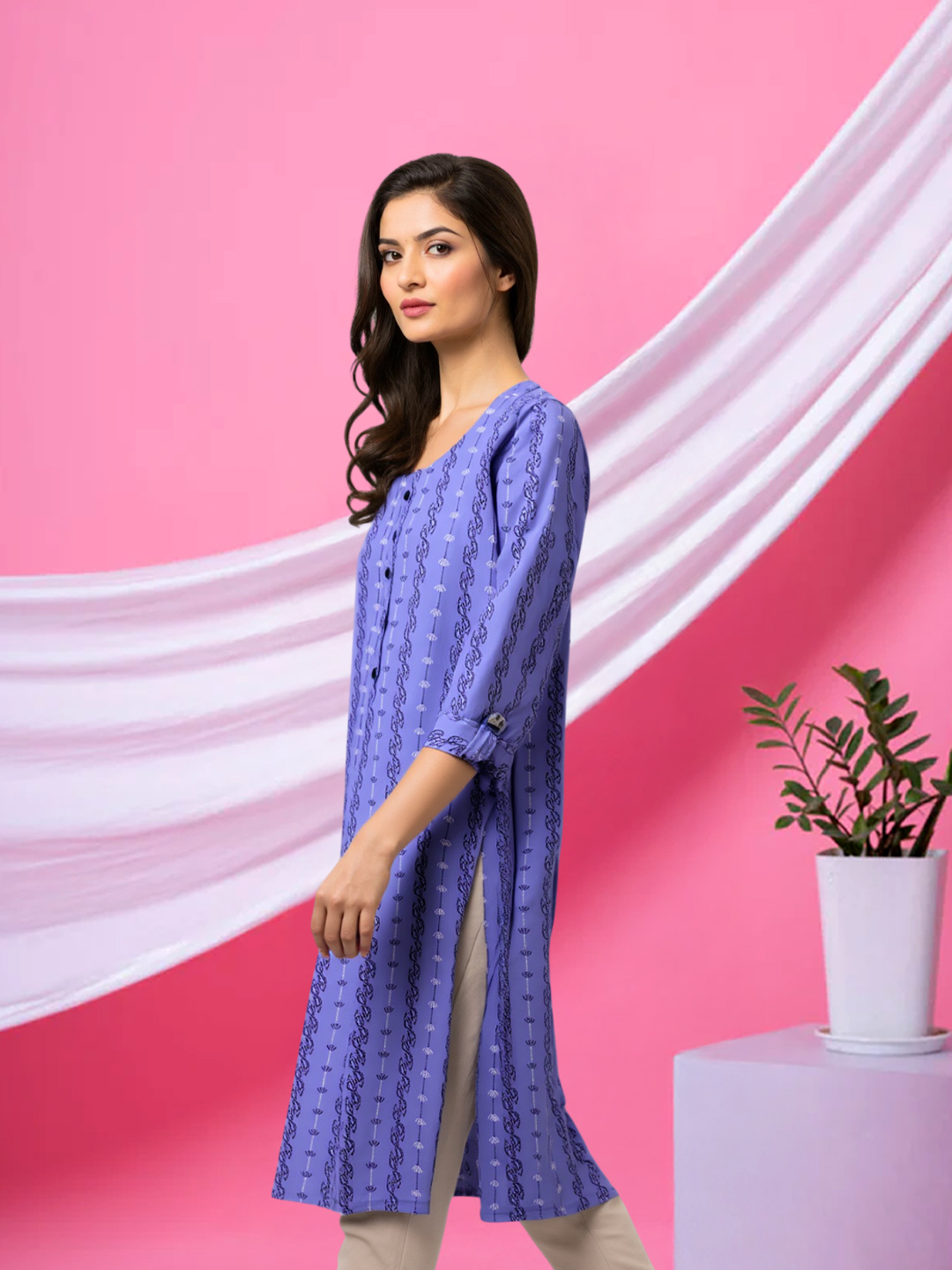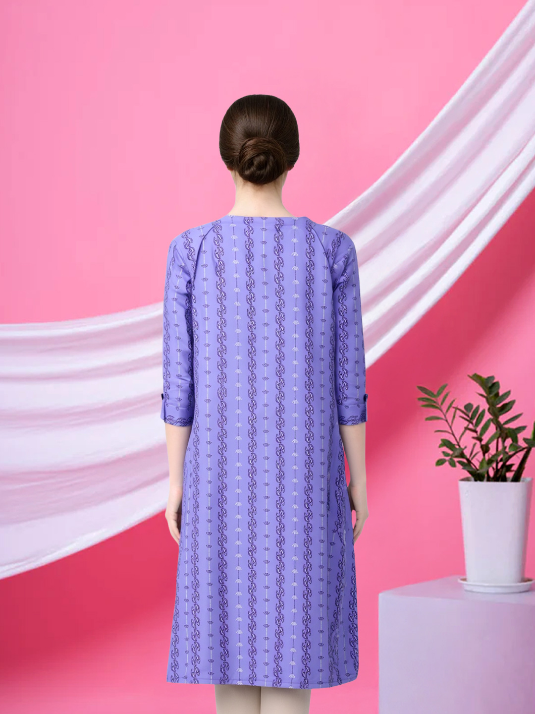 Designed for versatility, the 3/4 sleeves provide just the right amount of coverage. They enhance the kurta’s elegant appeal while ensuring ease of movement throughout the day.
