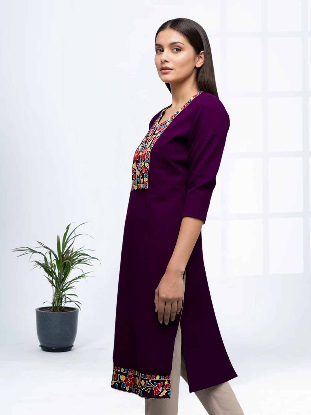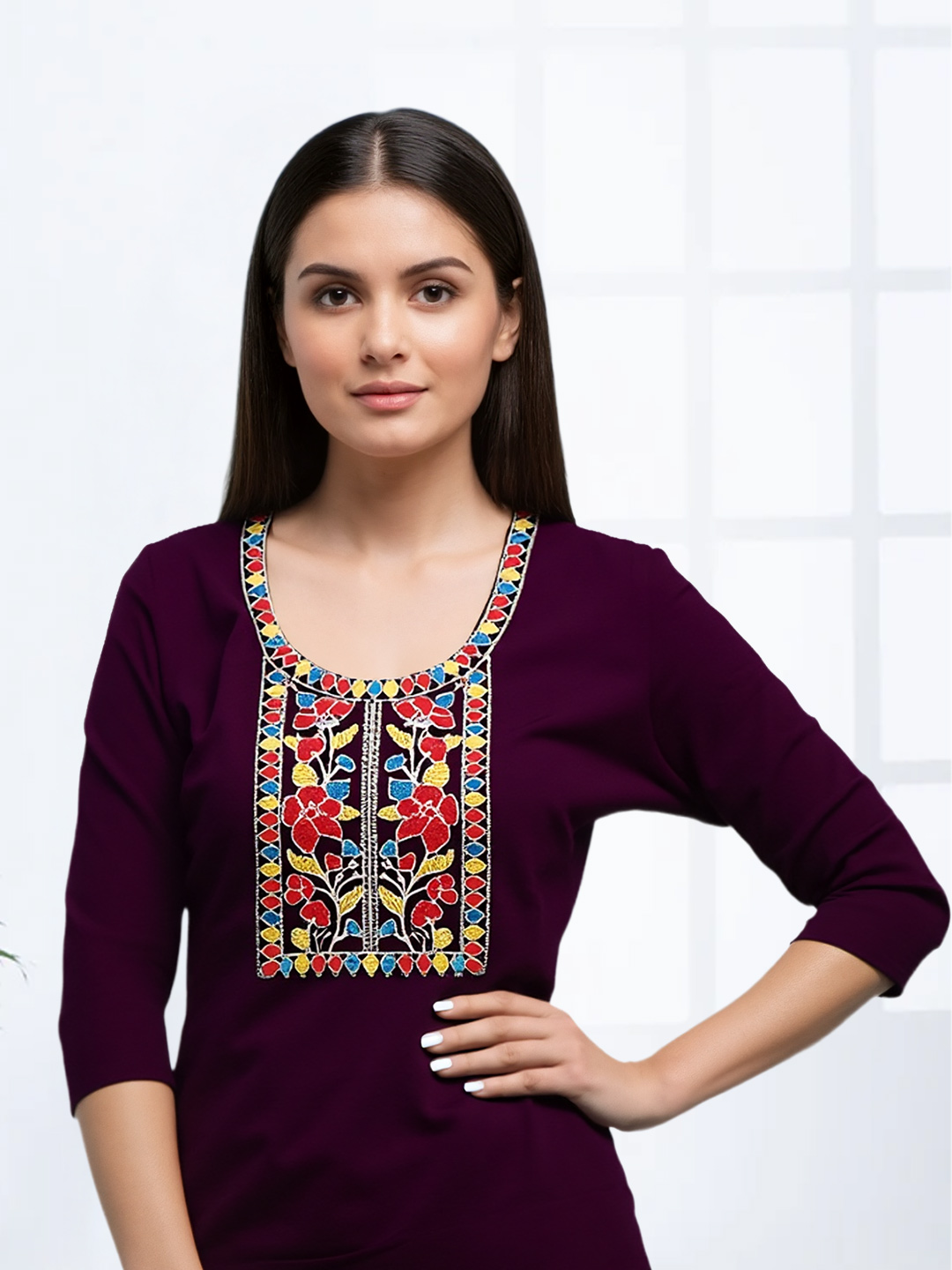 Designed with 3/4 sleeves, the kurta combines modern style with comfort, making it perfect for all-day wear.