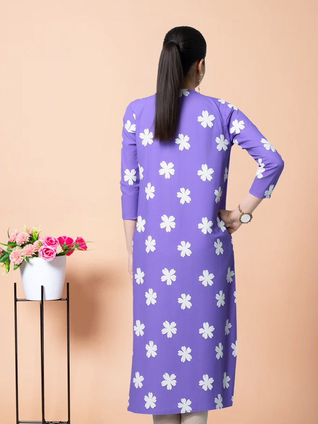 This Stunning Floral Printed Kurta is the perfect blend of style and comfort. The vibrant floral print creates a striking, energetic look, while the rounded neckline with subtle button detailing elevates the design with a touch of class. Its comfortable fit ensures you feel great all day long, whether you're attending a casual gathering or out for a relaxed brunch. The 3/4 sleeves offer the ideal balance of coverage and lightness for those warmer days.