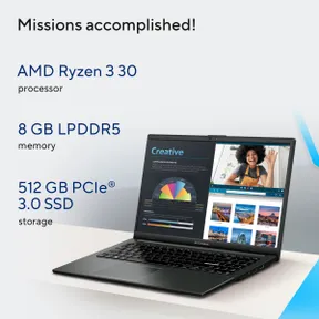 Powered by the AMD Ryzen 3 30 processor and 8GB LPDDR5 RAM, this laptop delivers smooth multitasking, fast app launches, and responsive performance for daily computing. The 512GB SSD ensures rapid boot times and generous storage for your files and media.