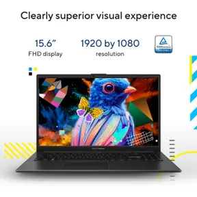 The Asus Vivobook 15 features a 15.6-inch Full HD display, offering vibrant visuals and ample screen space for work, streaming, and creativity. Its Mixed Black finish gives it a modern, professional look, perfect for both office and home use.
