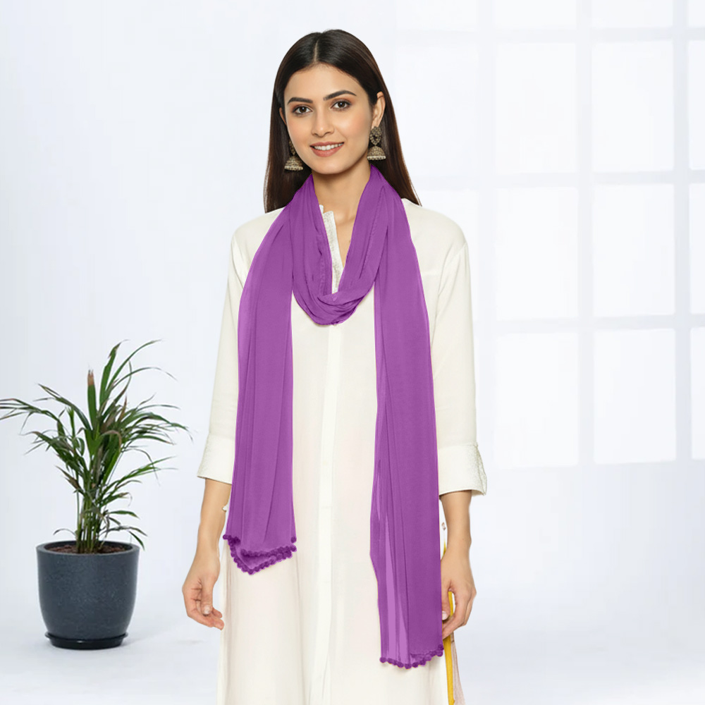 Elevate your everyday style with this Lavender Solid Chiffon Dupatta. The understated lavender tone brings freshness and softness, while the lightweight chiffon ensures you stay comfortable from morning to evening. This piece is perfect for casual errands, lunch meet-ups, or quiet weekend moments — effortlessly chic and wonderfully wearable.