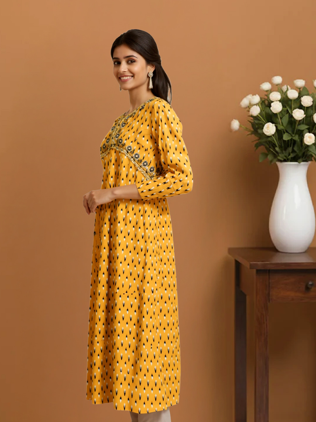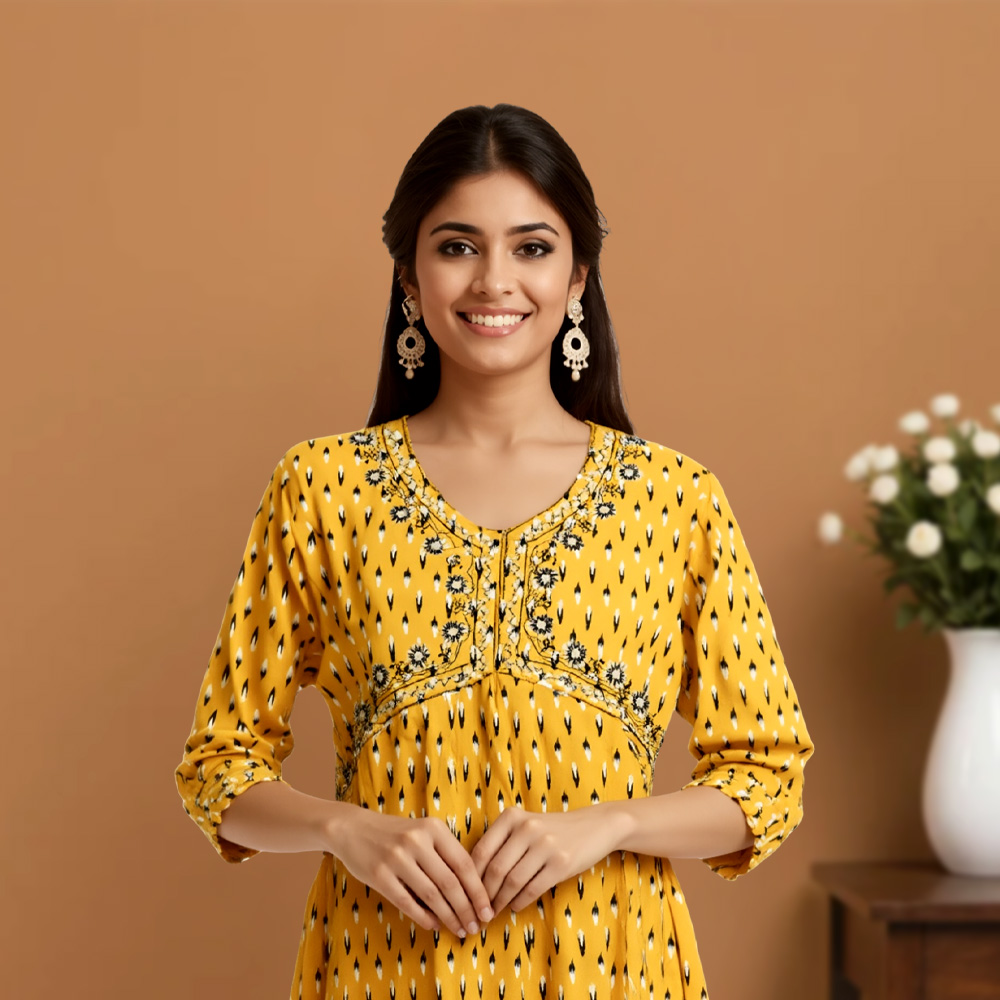 Designed with the modern mom-to-be in mind, the Women's Alia Cut Maternity Kurta offers a graceful silhouette and a flattering fit. The Alia cut provides gentle shaping and extra comfort, making it ideal for every trimester. The soft, breathable fabric ensures you stay cool and at ease, while the elegant design lets you look fabulous for any occasion.