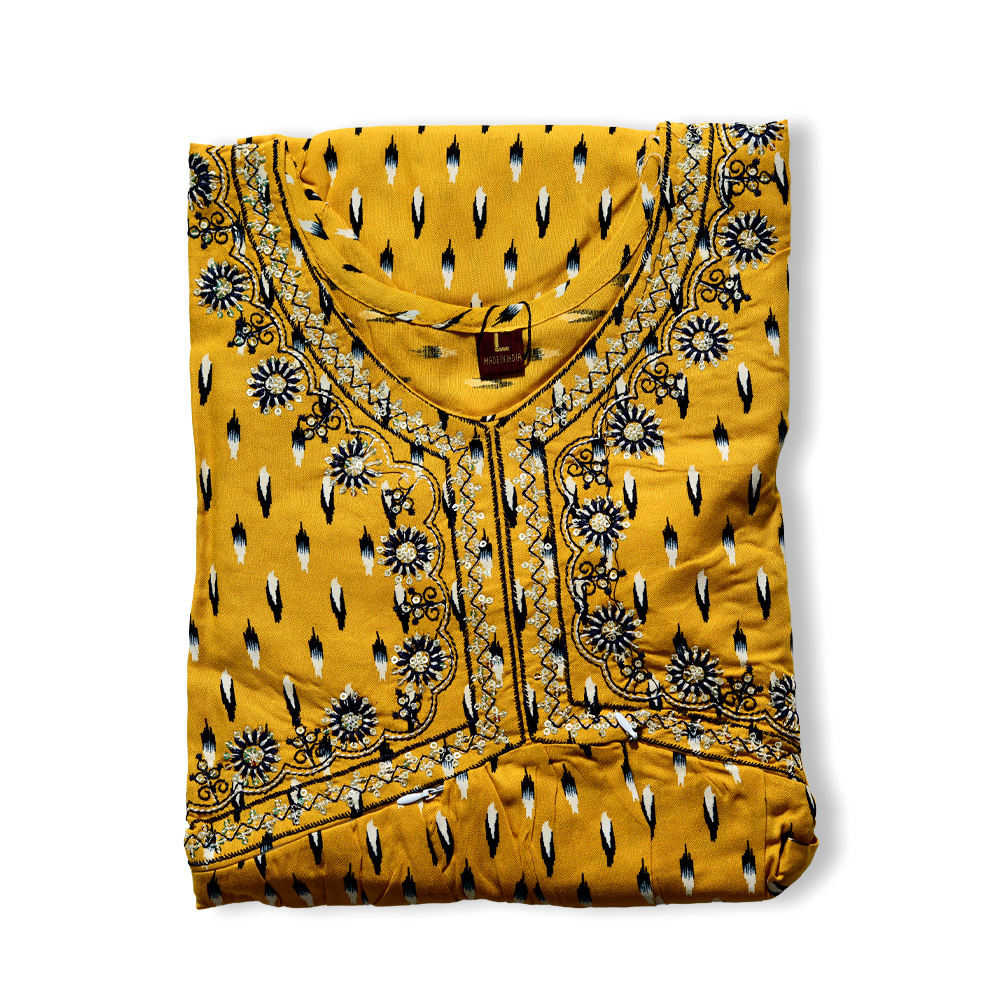 The Alia Cut Maternity Kurta is a wardrobe staple for any expecting mother. With its versatile design, it effortlessly transitions from casual to semi-formal occasions. The Alia cut provides ample room while keeping the look sleek and flattering, making it an ideal choice for everything from baby showers to daily errands.