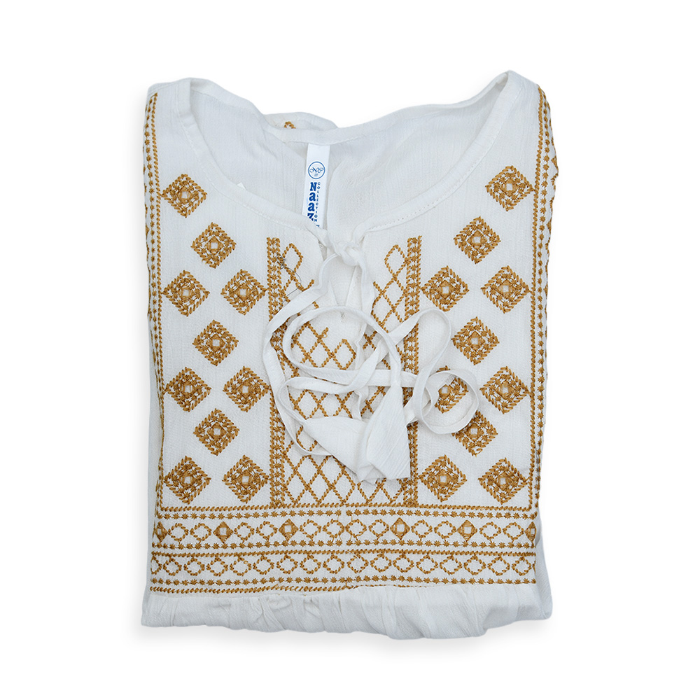 With its classic embroidery, comfortable fit, and airy fabric, this ethnic tunic top is a wardrobe essential. Style it up with statement jewelry or keep it minimal for a clean, elegant finish.