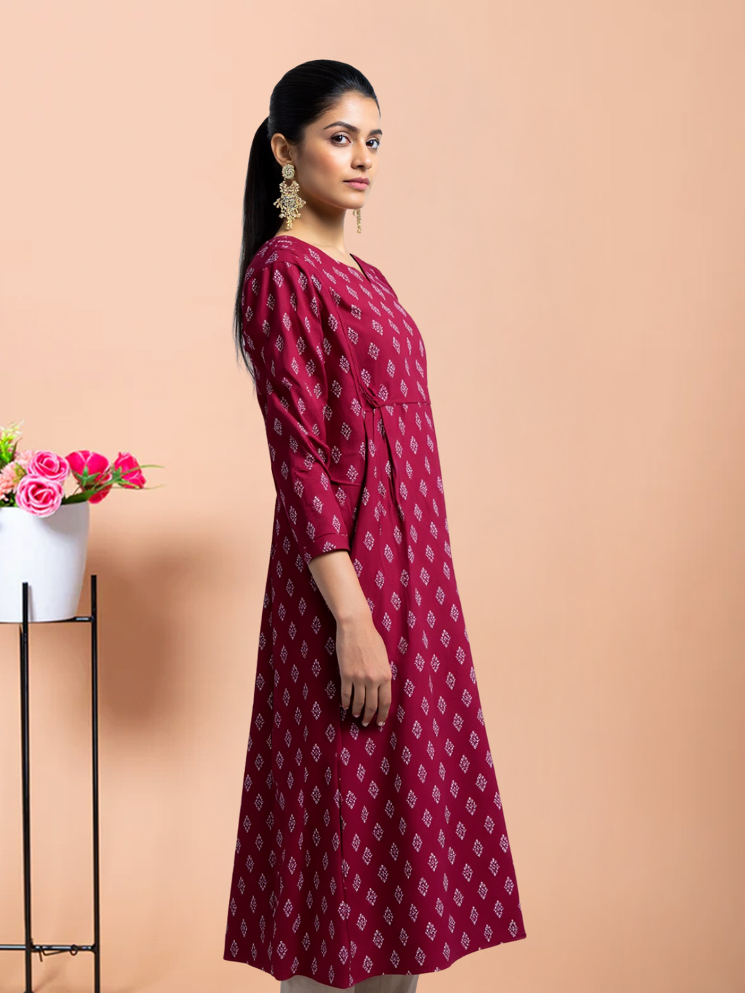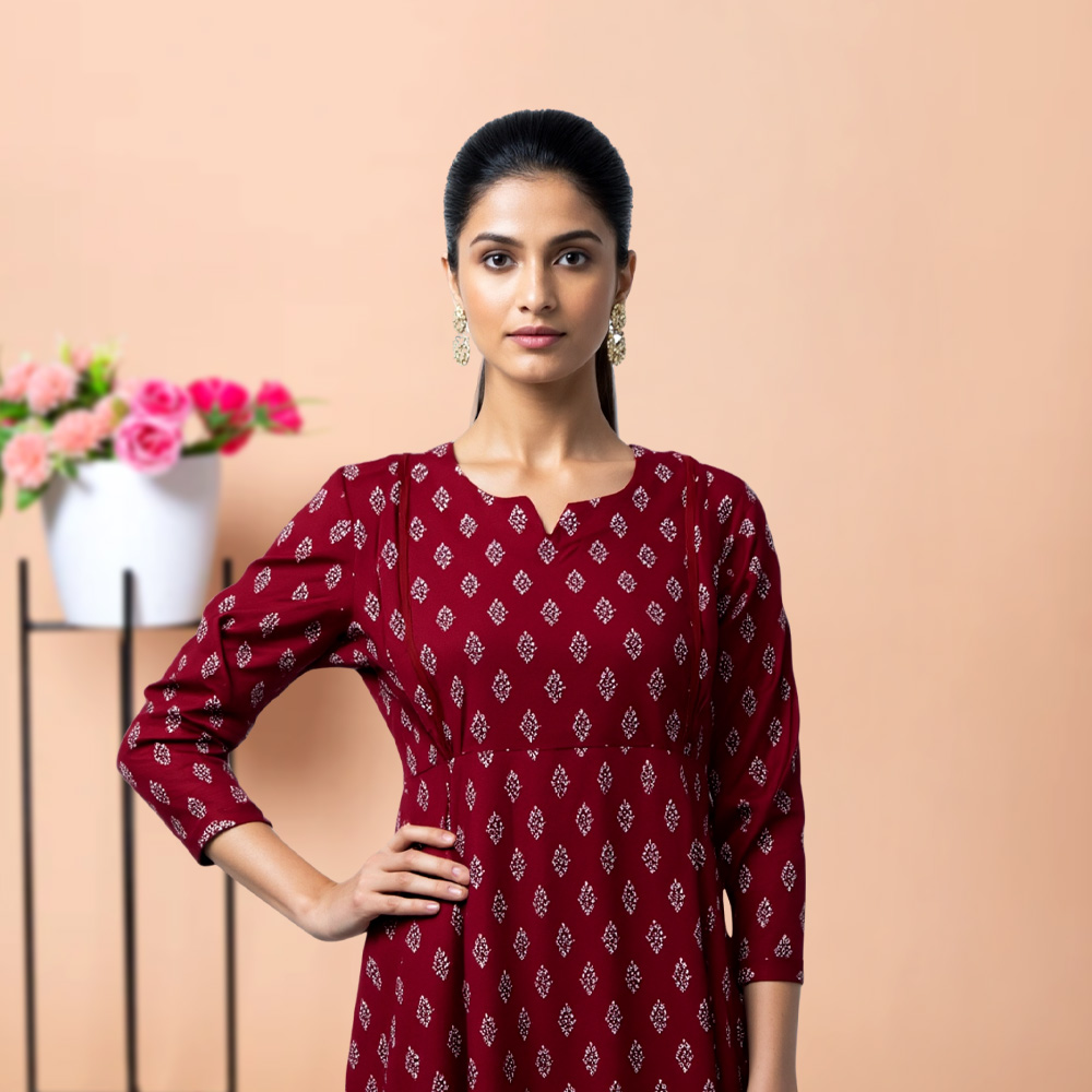 Designed with premium cotton for all-day comfort, this ethnic maternity kurta keeps you feeling fresh and looking radiant. The notched neckline and 3/4 sleeves add a touch of elegance, while the relaxed fit gives plenty of room to grow. A go-to piece for everything from casual days to festive moments.