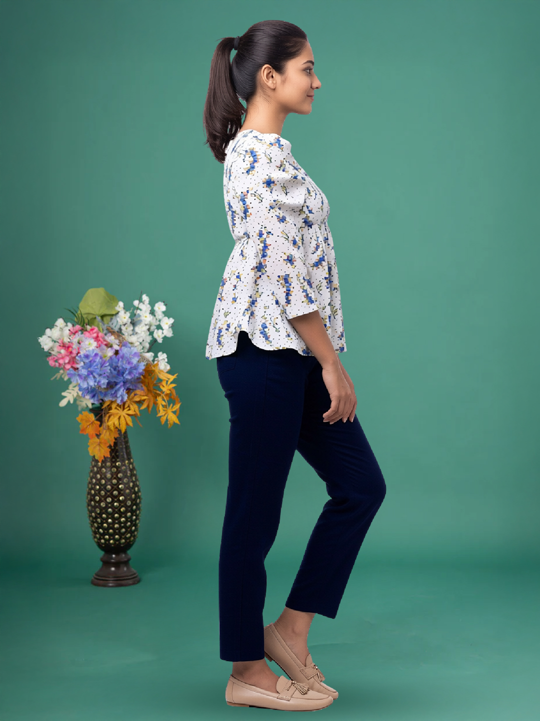 Step out in confidence with this women’s floral print top featuring a flattering square neckline and statement puff sleeves. The elegant floral pattern adds a soft feminine touch, while the comfortable design ensures ease throughout the day.