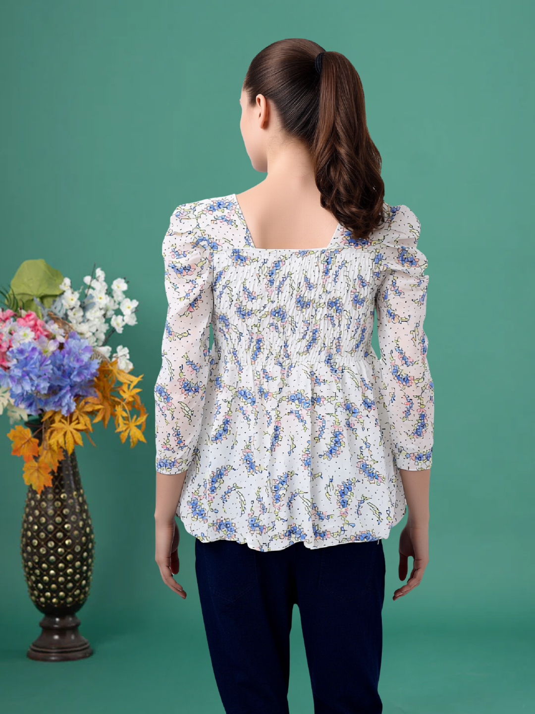 Designed for women who love stylish comfort, this floral print top features long puff sleeves and a square neckline for a polished look. The elegant floral design and relaxed feel make it a versatile addition to your everyday wardrobe.