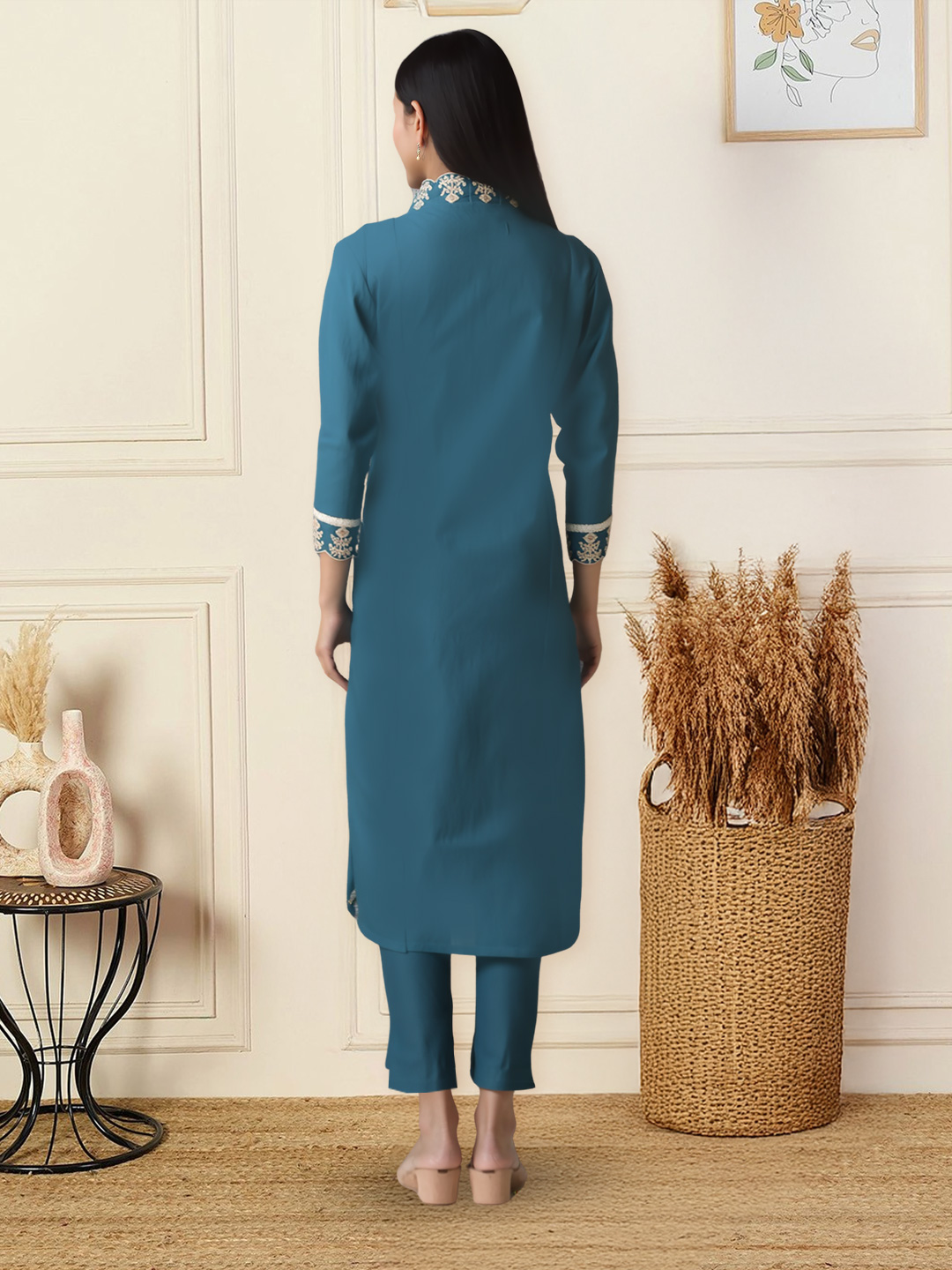 This kurta set exudes effortless sophistication, with intricate floral embroidery that adds an element of delicate artistry. Every stitch is crafted to perfection, making it an ideal choice for those who appreciate refined fashion with a touch of traditional charm.