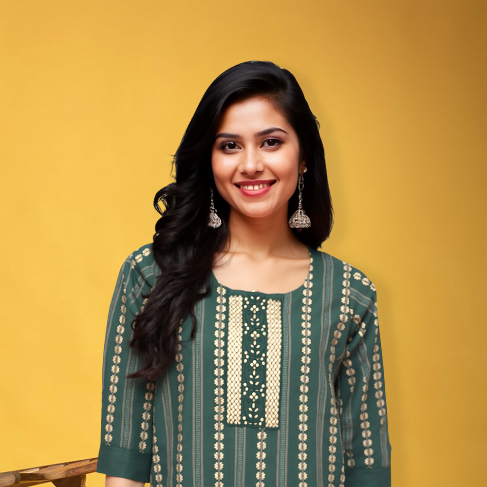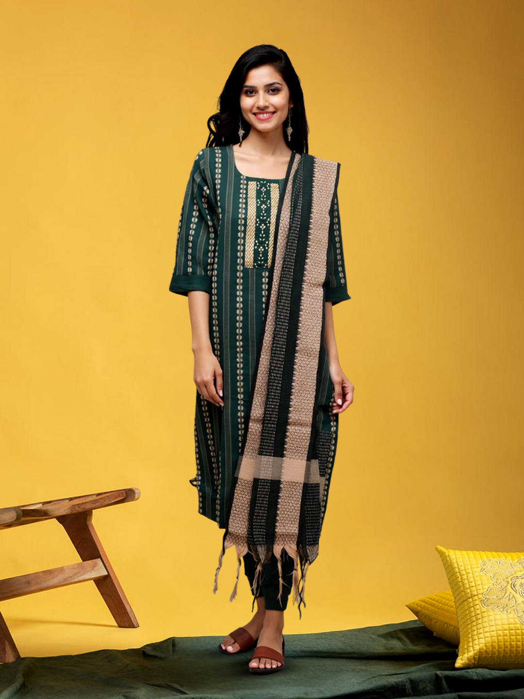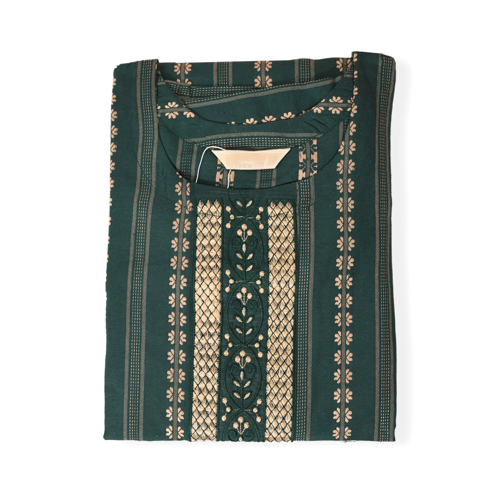 Make a statement with this rich and regal ethnic ensemble. The deep, luxurious color instantly adds sophistication, while the classic design with 3/4 sleeves and matching pants ensures a flattering, comfortable fit. The elegant dupatta completes the ensemble, making it perfect for festive occasions, evening gatherings, or intimate celebrations.