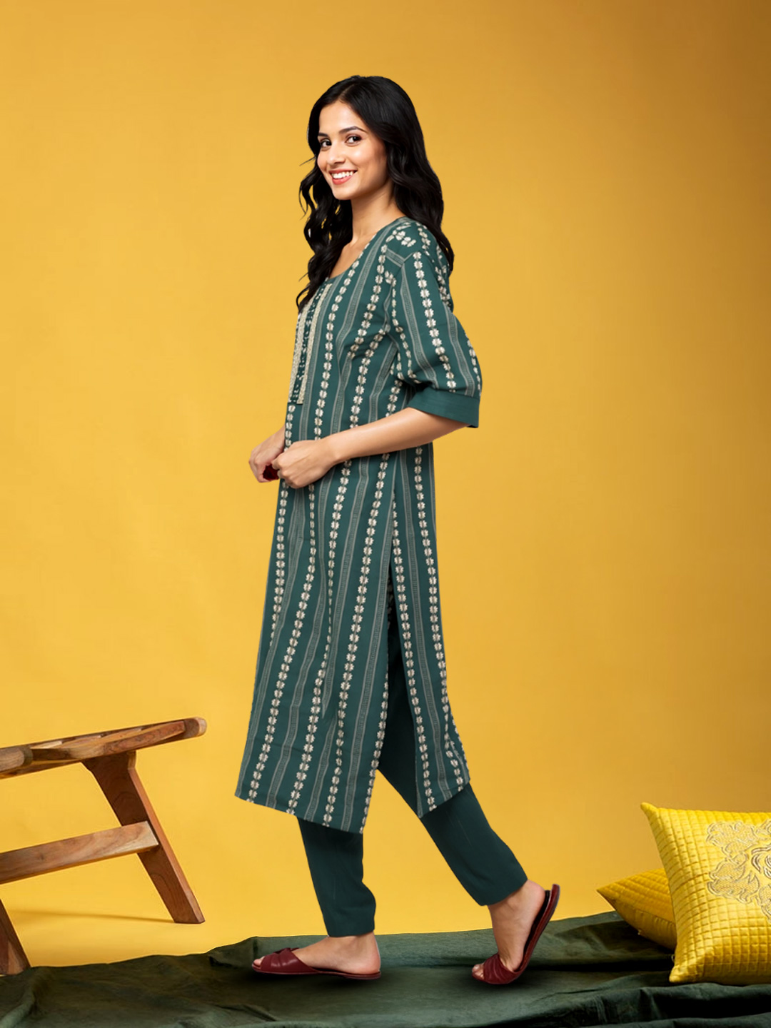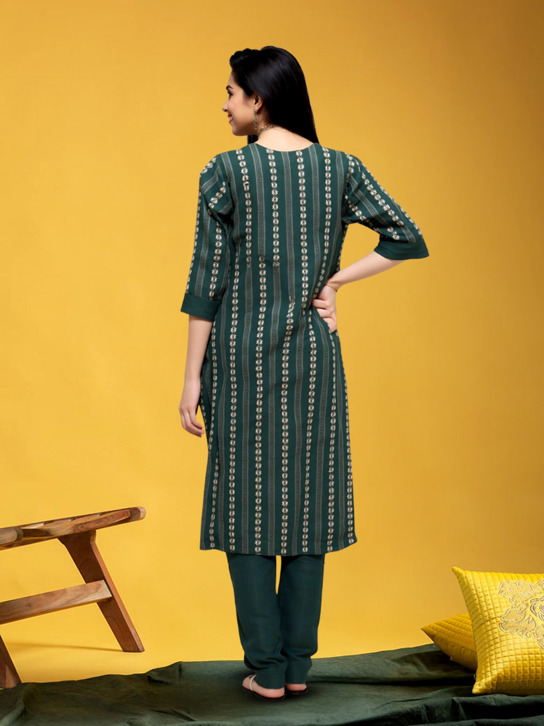 Elevate your wardrobe with this rich and luxurious ethnic ensemble. The deep, captivating color adds an air of sophistication, while the timeless round neck and 3/4 sleeves offer both style and comfort. Paired with matching pants and a comfortable dupatta, this set will ensure you feel as regal as you look.