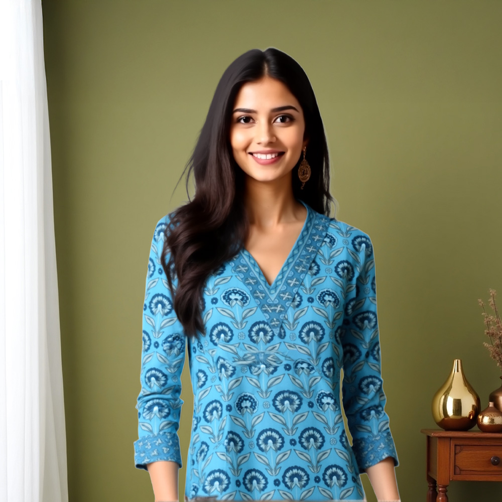 The Elegant Floral Ethnic Kurta brings the timeless charm of florals to life. The delicate floral print on the kurta adds an elegant, feminine touch, making it perfect for both day and evening events. The soft hues and intricate detailing elevate this outfit, giving it a modern yet classic appeal.