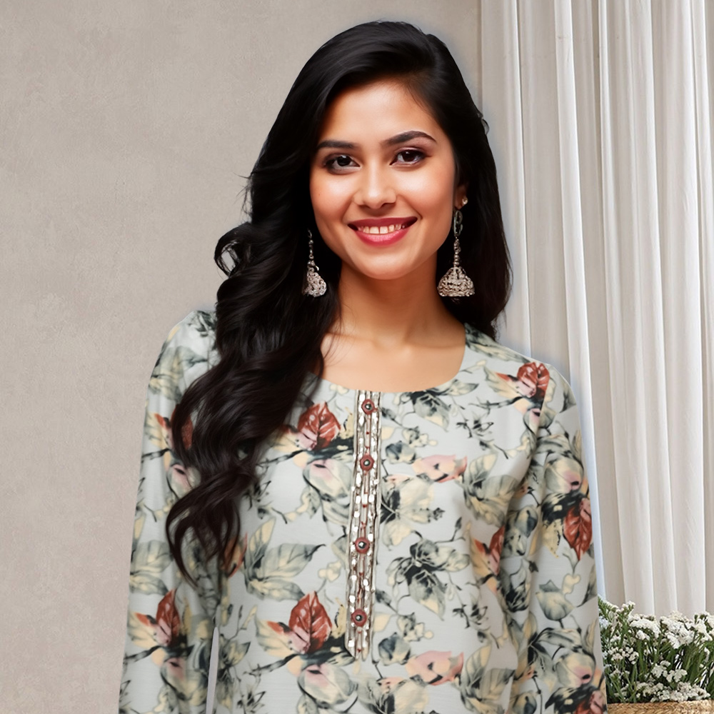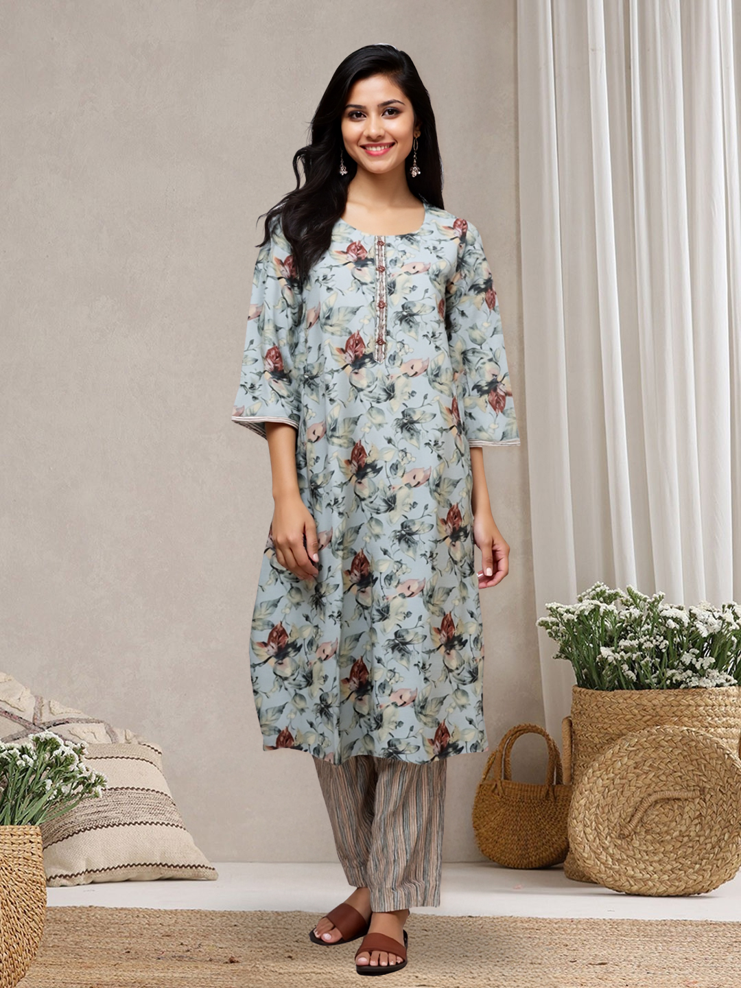 Whether you're heading to work or meeting friends, this kurta set combines simplicity and charm for a beautifully put-together look.