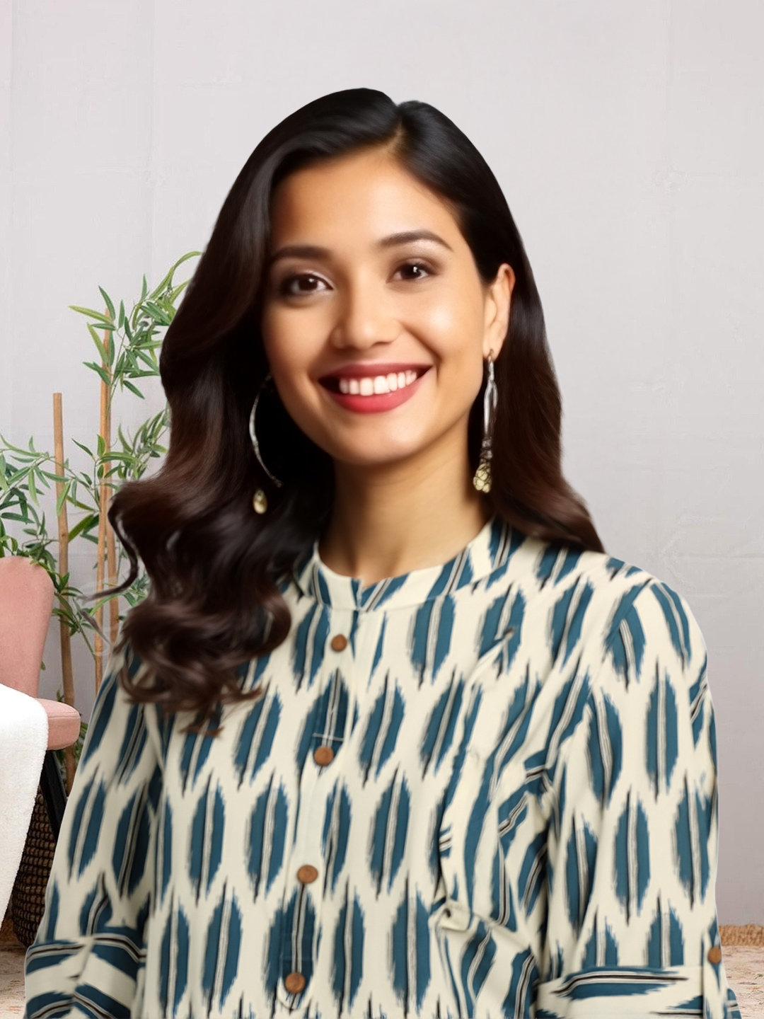 From desk to dinner, this Ikat-inspired kurta has you covered. The refined collar and button-tab sleeves allow you to style it your way — easy, elegant, and endlessly wearable.