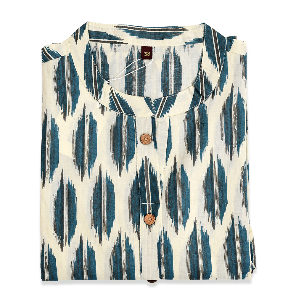 Whether you're dressing up or down, this kurta’s all-over Ikat print and structured detailing give it a polished ethnic edge that never goes out of style.