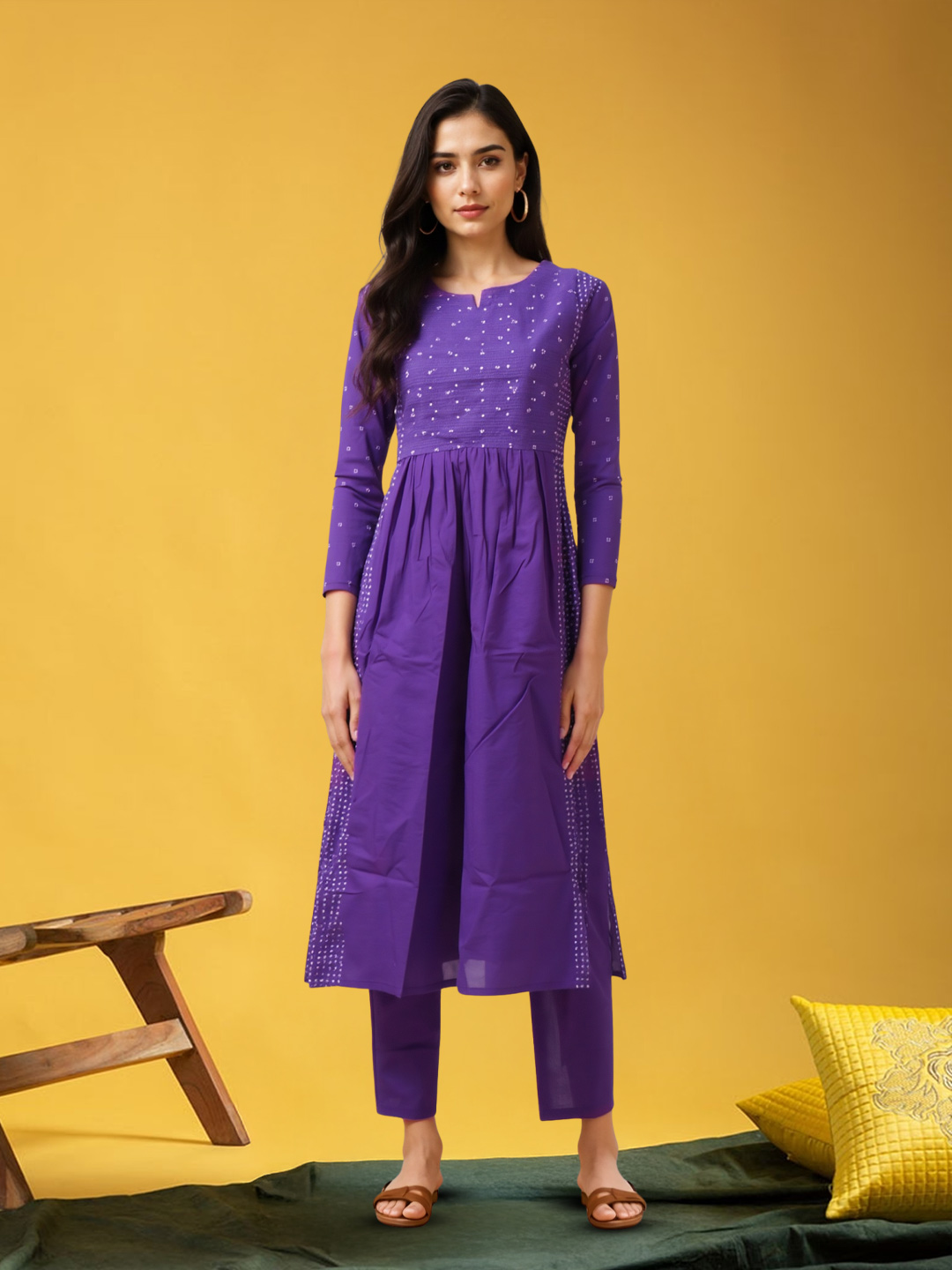 The pleated kurta offers a blend of elegance and fluidity, while the matching straight pants provide a clean, sleek silhouette. A stunning set that radiates effortless charm.