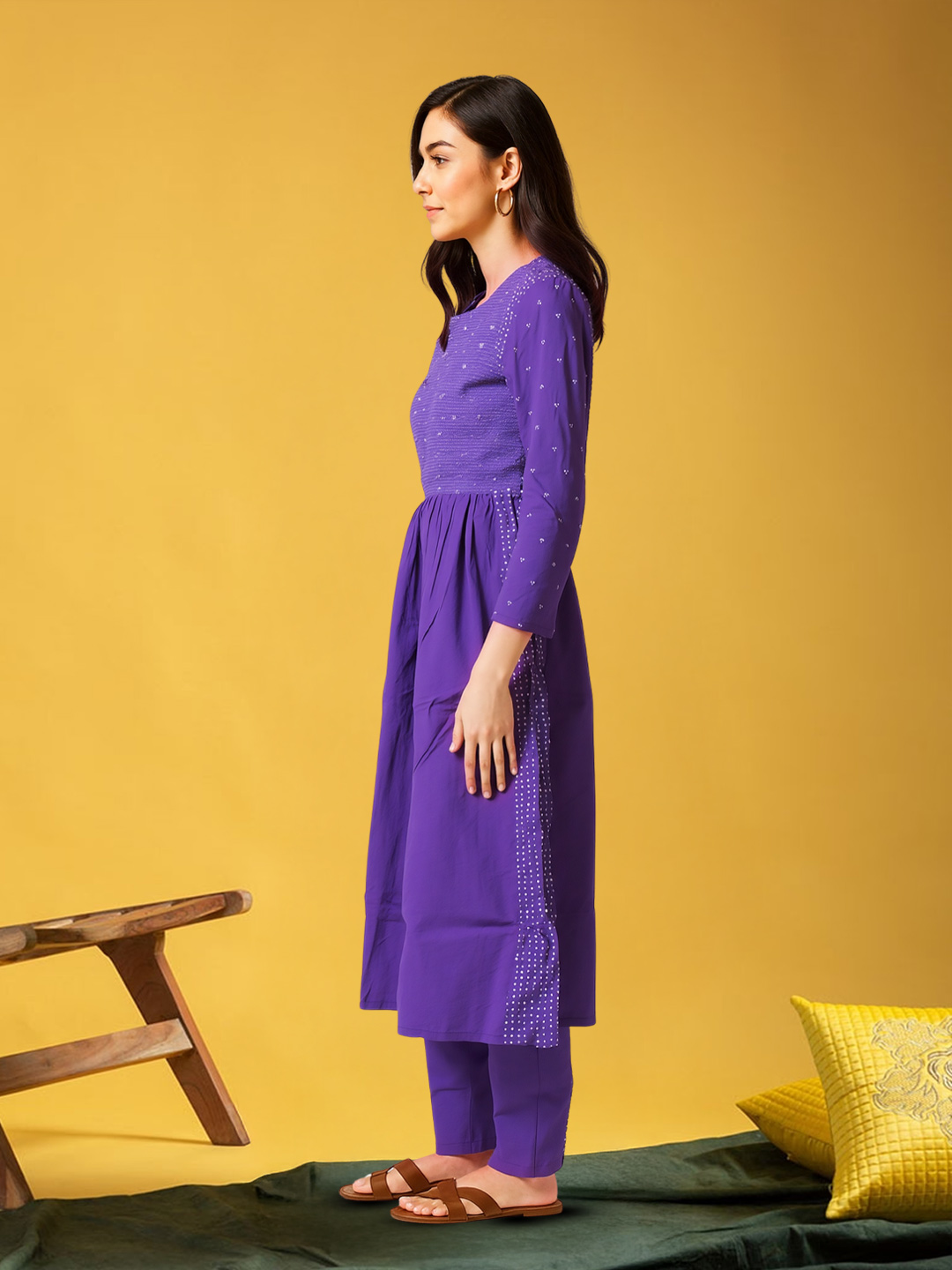 The straight-fit pants offer both style and comfort, creating a smooth contrast to the pleated kurta while maintaining a relaxed yet elegant vibe.
