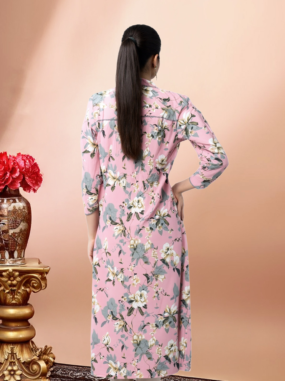 The sleek Mandarin collar neckline adds a modern and minimal touch to this floral beauty. Pair it with straight pants or palazzos to create an effortlessly elegant look.