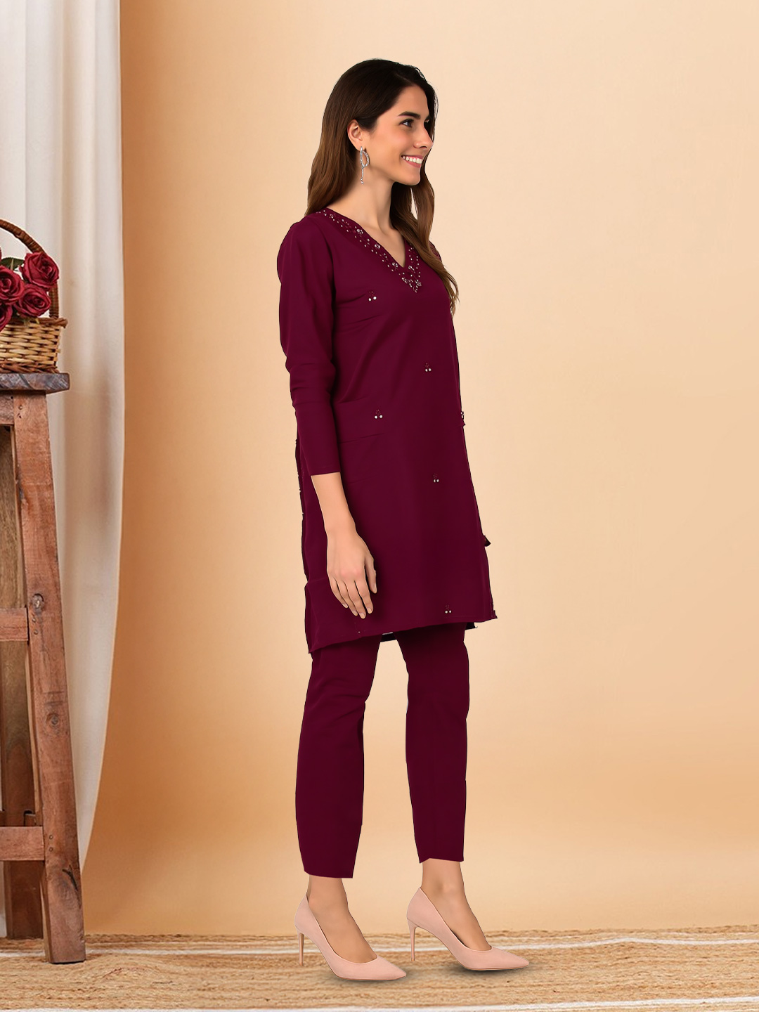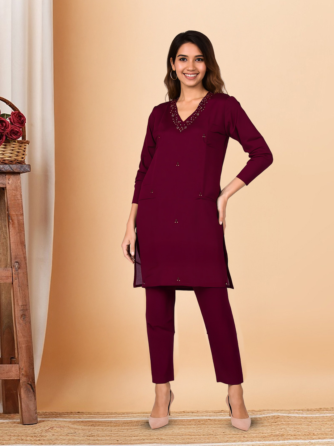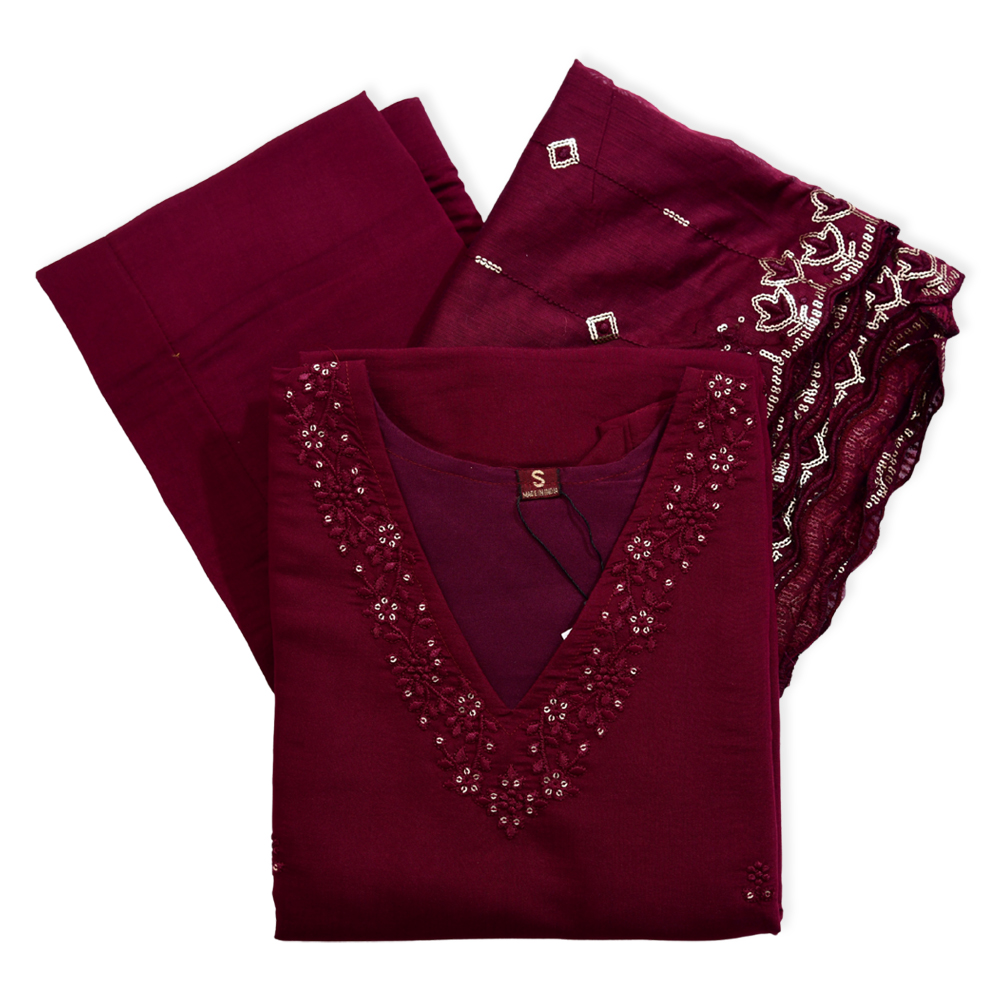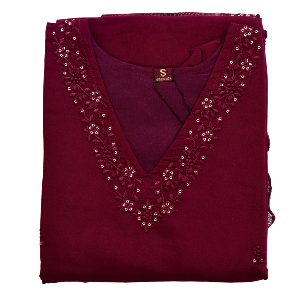 From the embroidered neckline to the sequin highlights, every element of this kurta set is crafted to make you stand out. Comfortable 3/4th sleeves and a breezy silhouette ensure you look and feel your best all day.