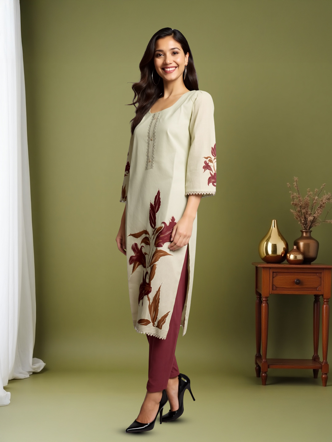 From festive gatherings to casual outings, this kurta set blends floral vibrance with graceful detailing, making it a versatile wardrobe essential.