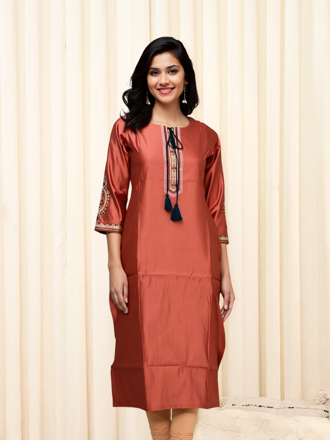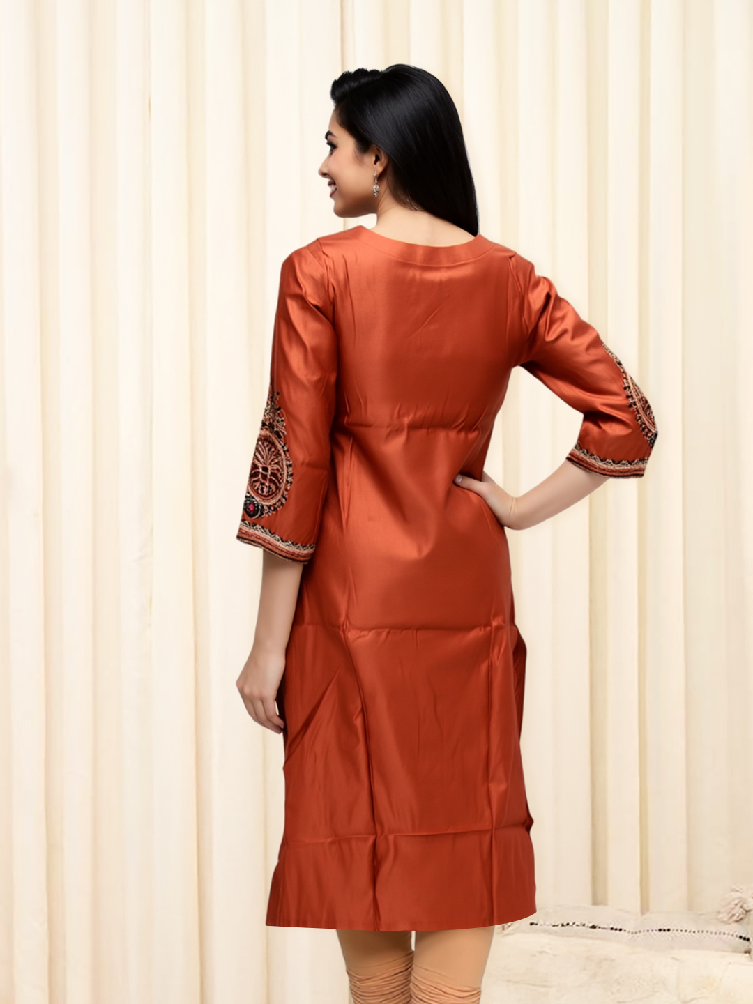 The 3/4 sleeve design is a perfect balance of style and comfort. Whether you're attending a summer brunch or layering for the cooler months, this kurta with its 3/4 sleeve ensures breathability while keeping you effortlessly chic. Pair it with leggings, palazzos, or even jeans for a look that works year-round.
