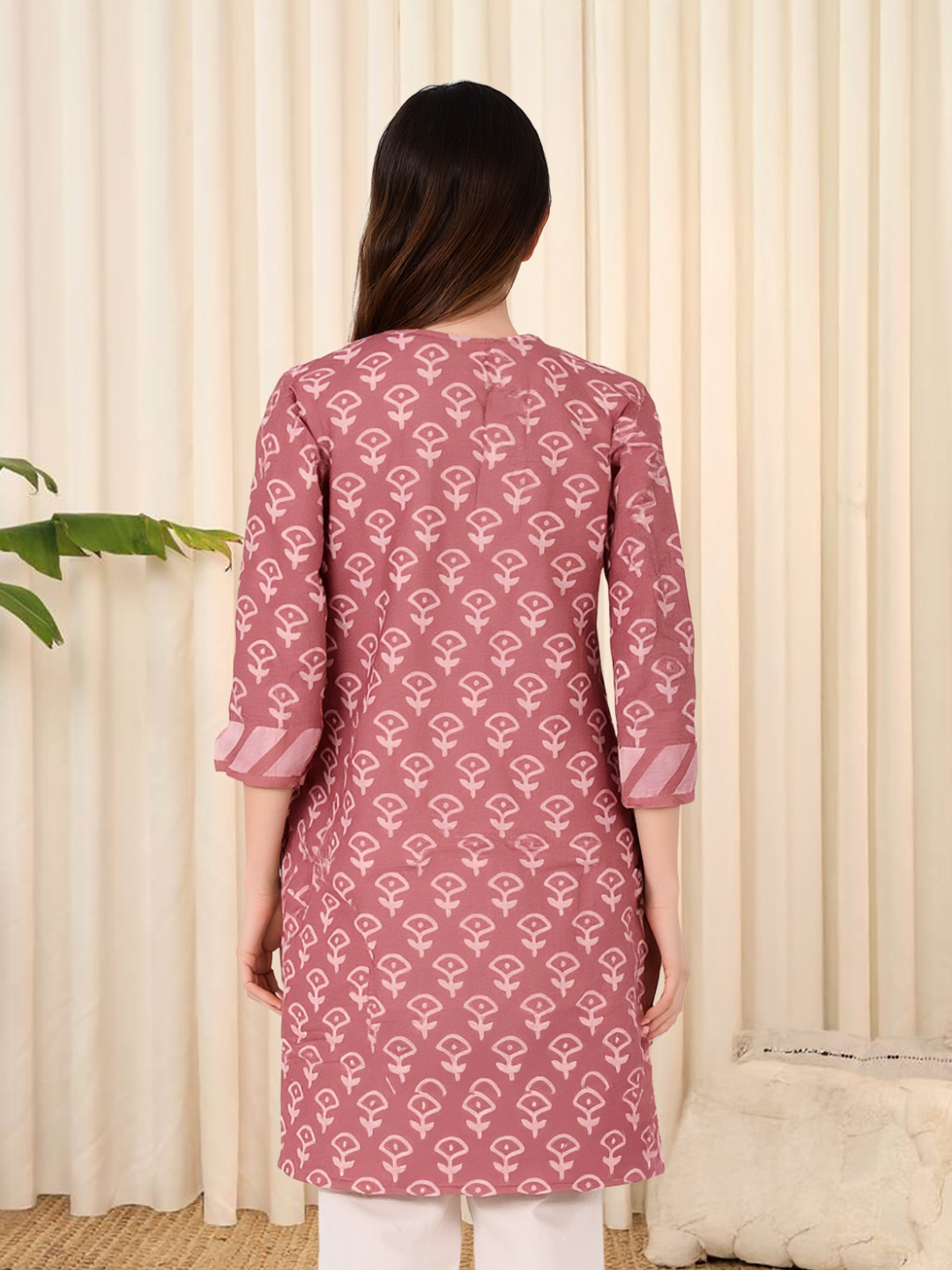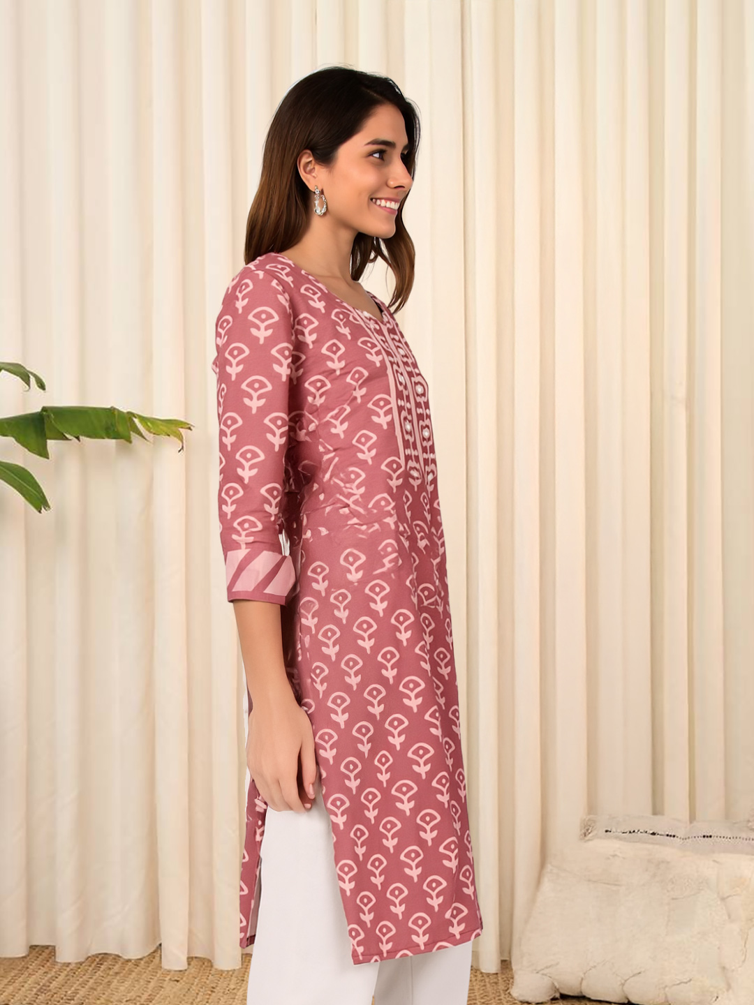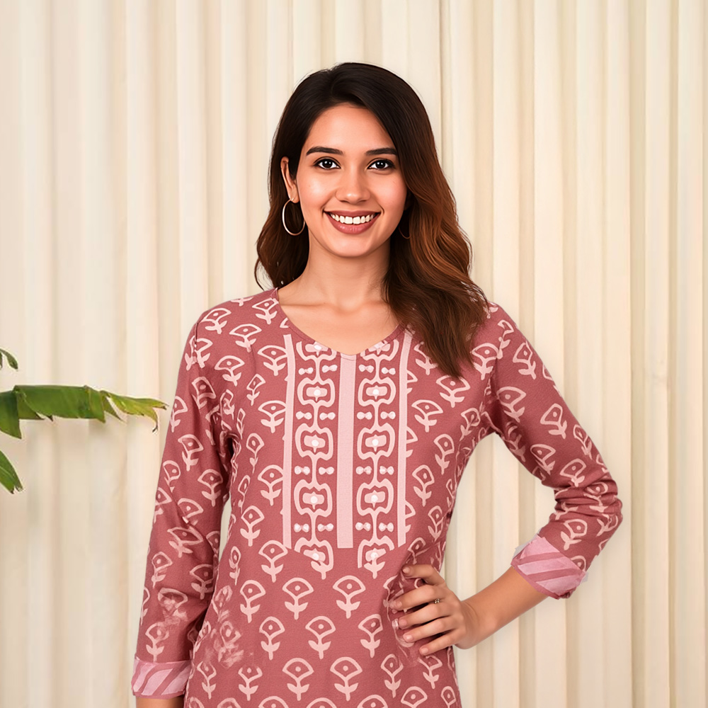 Who says you can’t be comfortable and chic at the same time? This floral print kurta combines style with ease, thanks to its airy fabric and flattering V-neckline. The 3/4 sleeves give you freedom of movement while ensuring a smart, put-together look for daily wear.