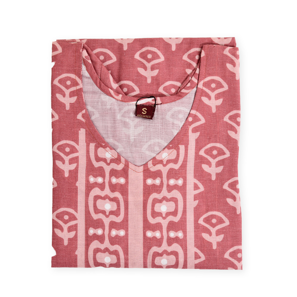 Celebrate nature's beauty with this stunning kurta, featuring an intricate floral pattern that's both timeless and contemporary. The V-neck design adds an elegant touch, while the 3/4 sleeves keep you cool and stylish, making it an excellent choice for warm-weather outings or relaxed office days.