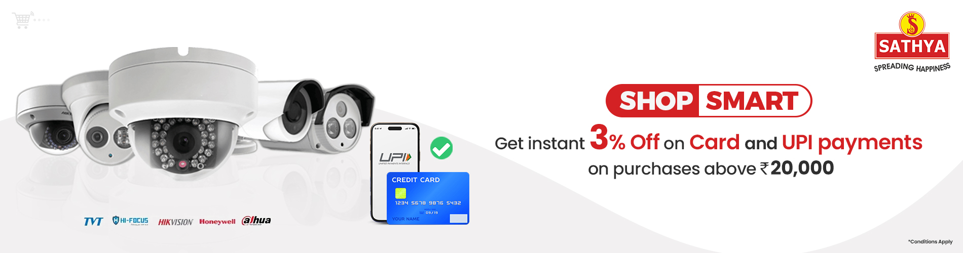 Hikvision 3 CCTV Cameras Combo (1 Indoor & 2 Outdoor CCTV Cameras) + 4CH DVR + HDD + Accessories + Power Supply + 60m Cable + Power Bank