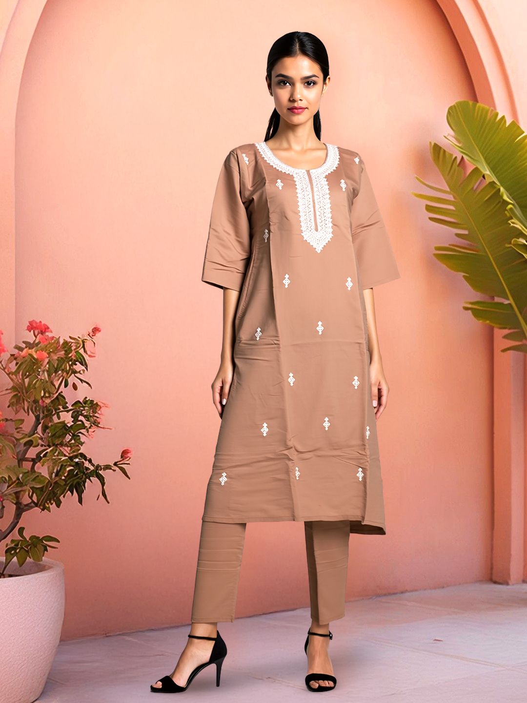 Looking for an outfit that combines comfort with style? This embroidered kurta set is the answer. Featuring a relaxed 3/4 sleeve, straight-fit pants, and a soft dupatta, it offers both a flattering silhouette and all-day comfort. It’s perfect for those who want to look effortlessly chic while feeling at ease.