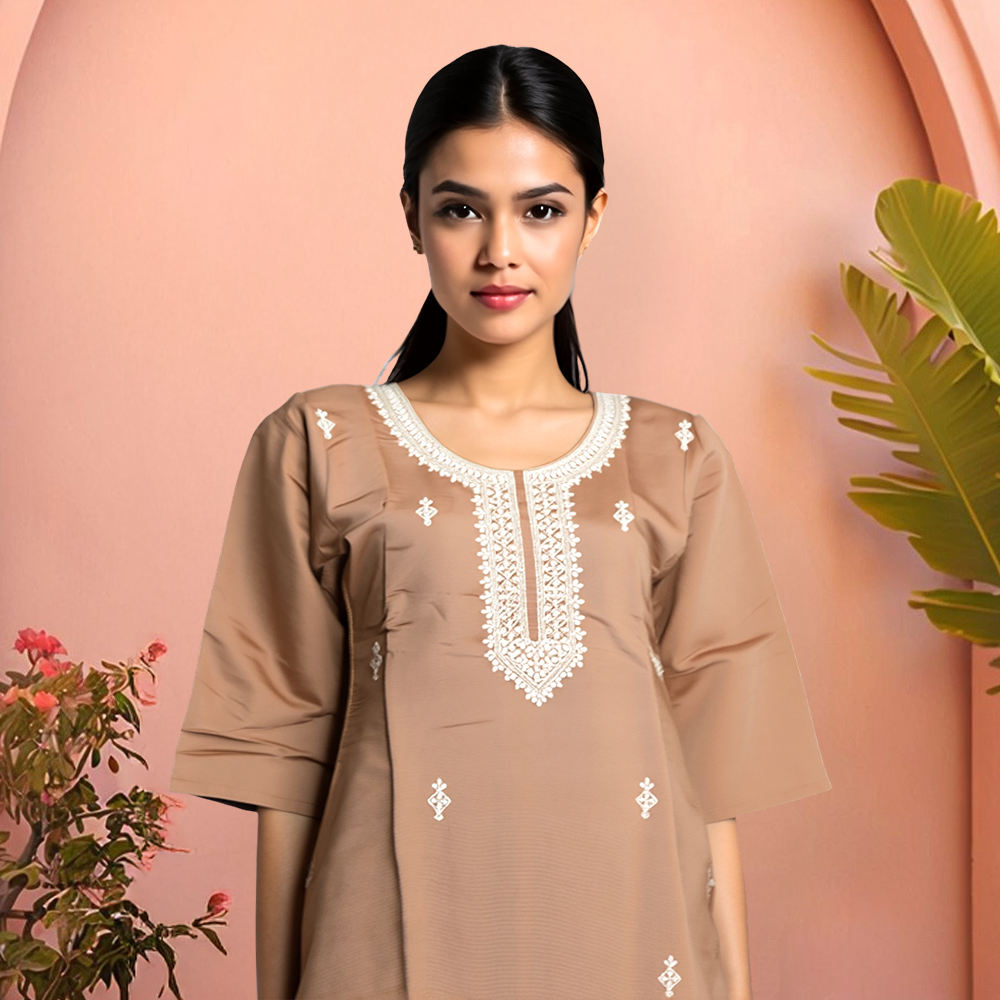 Crafted with care, this embroidered kurta set effortlessly blends traditional craftsmanship with a contemporary aesthetic. The minimalist silhouette paired with exquisite floral embroidery offers a perfect fusion of old-world charm and modern sensibility. Ideal for those who appreciate subtlety without compromising on style.